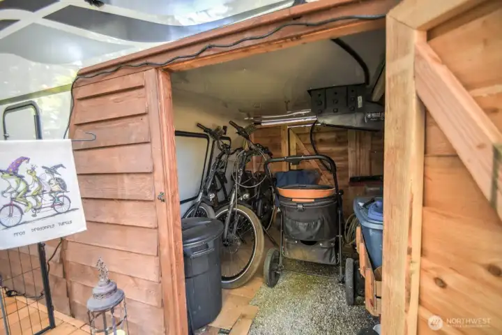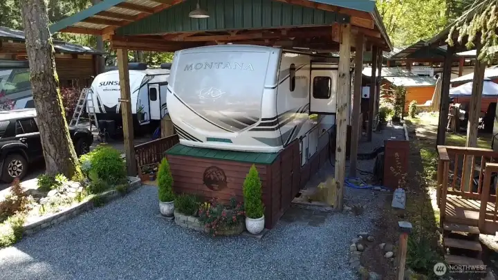20 HEMLOCK RV SITE /POLE BARN COVER WITH 2 SHEDS WASHER/DRYER. RV FOR SALE SEPARATE FROM THE OWNER! DECKING ALL THE WAY BACK TO PORCH AREA AND SHED