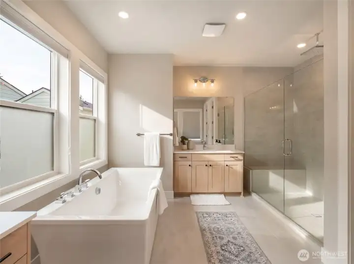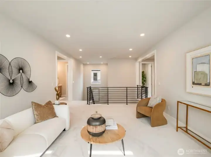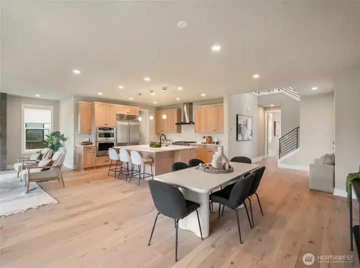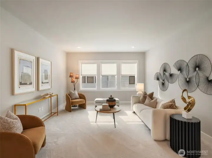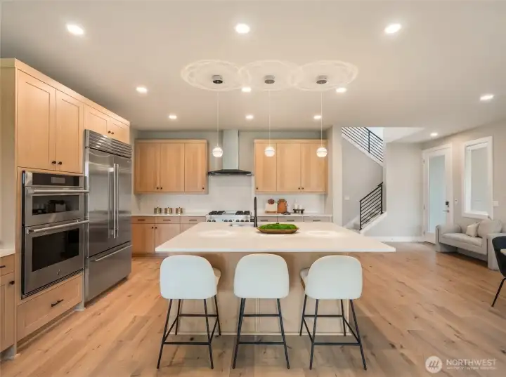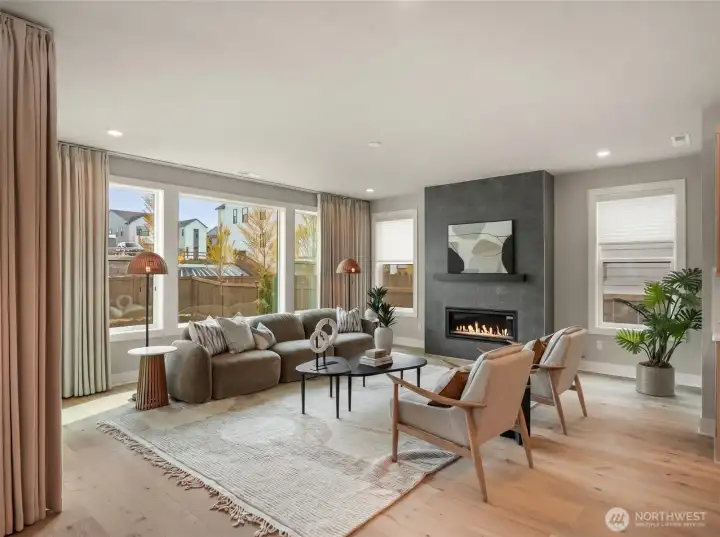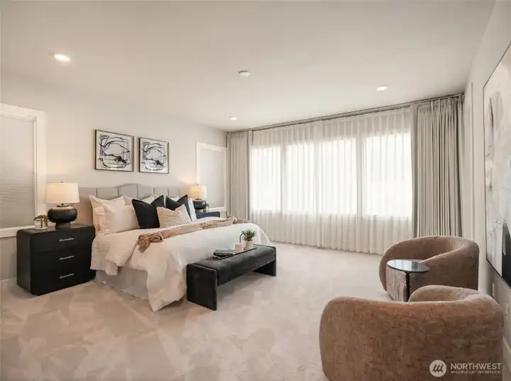 First resale opportunity at Alterra, Tri Pointe Homes’ luxury community in the heart of Newcastle. Completed in 2025 and set on a quiet cul-de-sac, this beautifully upgraded home offers the rare chance to own a nearly new residence without the wait. Beyond the dramatic two-story foyer, the main level opens to an expansive, seamless great room designed for modern living, with over $100K in upgrades including engineered hardwood flooring, a Sub-Zero refrigerator, JennAir professional-grade appliances, and custom window treatments throughout. The great room and backyard enjoy ideal southern exposure, filling the home with beautiful natural light. A private office and full guest suite on the main level add exceptional flexibility. Upstairs, a sunlit loft anchors the second floor, alongside a luxurious primary suite with an oversized walk-in closet, a secondary en suite, two additional bedrooms, a full bath, and another dedicated study. Incredibly functional and impressively livable, this home offers 5 bedrooms, 5 baths, 2 offices, and a loft in one of Newcastle’s most convenient locations—close to neighborhood trails and Newcastle Commons, roughly ten minutes to The Marketplace at Factoria, with easy access to I-90 and I-405, and served by the Issaquah School District.