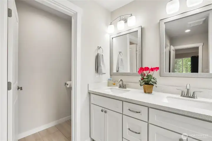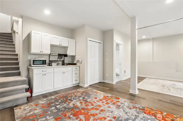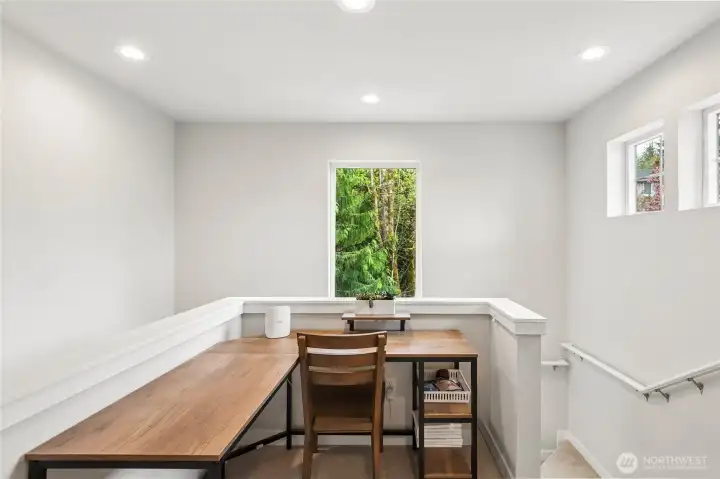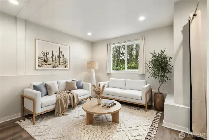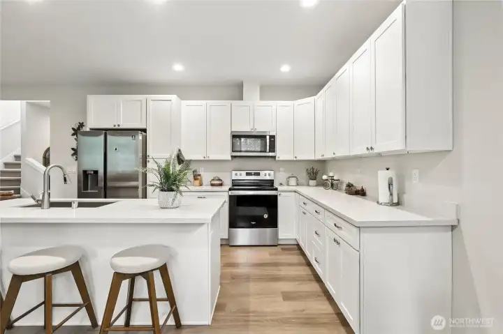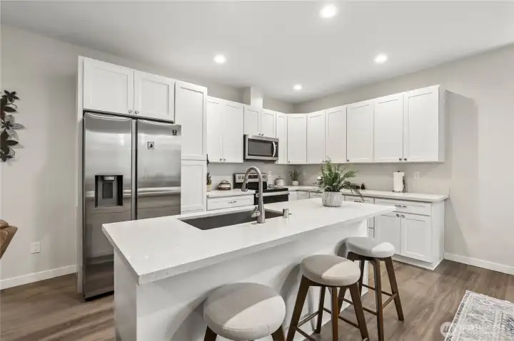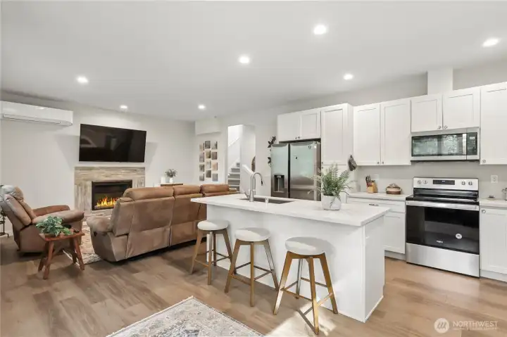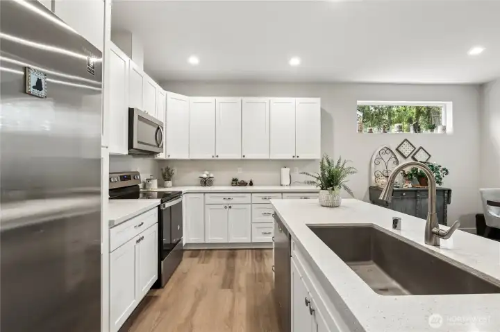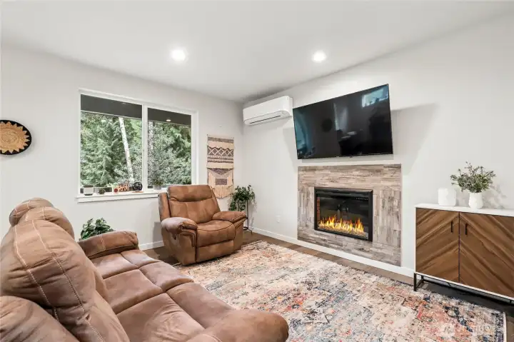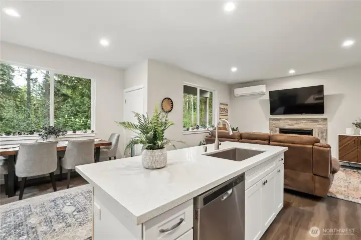 Welcome to this beautiful home in the desirable Silver View community. The open-concept main level showcases high-quality finishes throughout, creating a warm and inviting atmosphere that’s perfect for both everyday living and entertaining. The chef-ready kitchen features abundant cabinetry, stunning countertops, and sleek stainless steel appliances, while a cozy fireplace anchors the living space. Recessed lighting and expansive windows fill the home with natural light, and a sliding glass door leads to a private deck surrounded by lush, forest-like scenery. Upstairs, you’ll find a versatile bonus area along with four generously sized bedrooms, including a spacious primary suite with its own private bath, plus an additional full bathroom and a conveniently located laundry room. The lower level offers incredible flexibility with a large additional living area, a kitchenette, and a full bath—ideal for guests, multi-generational living, a home office setup, or potential rental as an ADU. Additional highlights include a two-car garage and a prime location just minutes from shopping, dining, and easy access to the Southworth ferry.