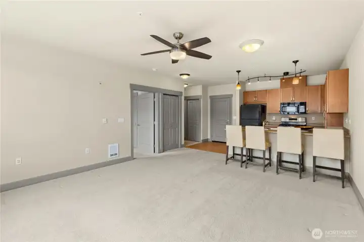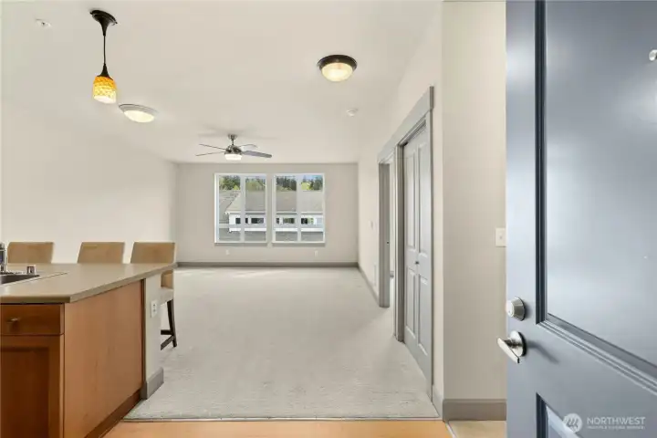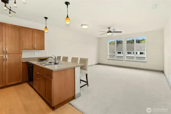Top floor 1-Bedroom Starpoint condo featuring excellent views of Grand Ridge and Tiger Mountain, with rare covered view deck. Great value and in impeccable condition, this home offers all new fresh interior paint. Enjoy an open kitchen design with breakfast bar and brand new oven with gas range. The spacious bedroom with a ceiling fan includes direct access to the covered view deck—perfect for relaxing while taking in scenic surroundings. The open layout provides both comfort and functionality for everyday living and entertaining. The home includes secured building entry for added peace of mind, storage in the retail garage, and one assigned parking space. You’ll also appreciate the brand new LG washer/dryer set —making this home truly move-in ready. Located within walking distance to Grand Ridge Elementary school and surrounded by an abundance of parks, sports courts, shopping, dining, trails and more. This home offers the perfect blend of convenience and lifestyle.