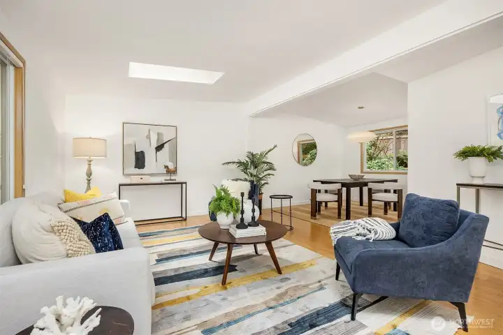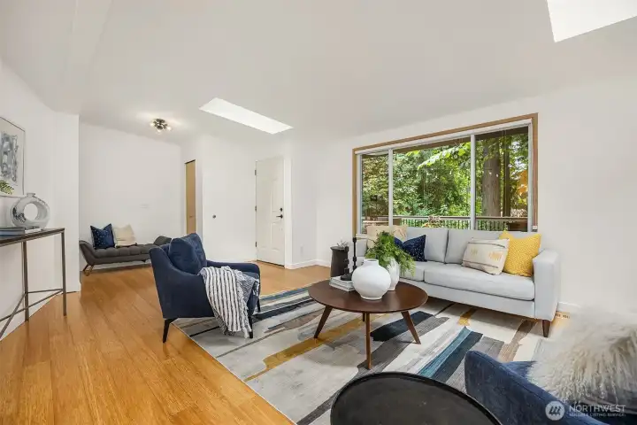 Staging recently removed; this shows the generous sized living room which can accommodate various furniture configurations.