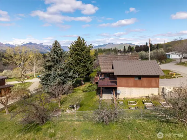 Comes with established apple tree, raspberries, strawberries, and rhubarb.