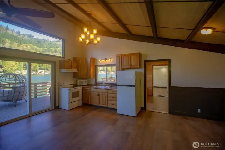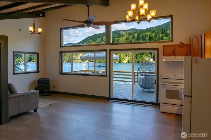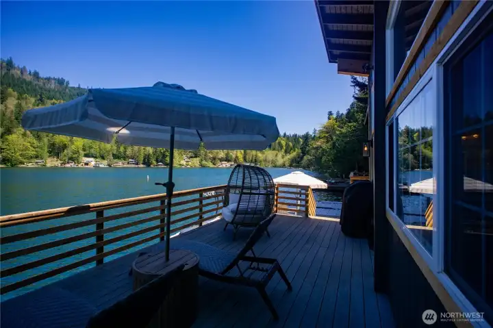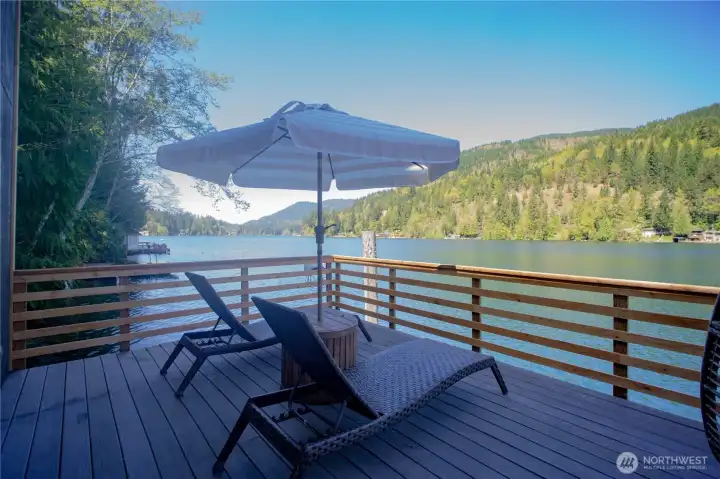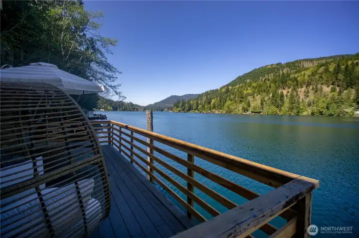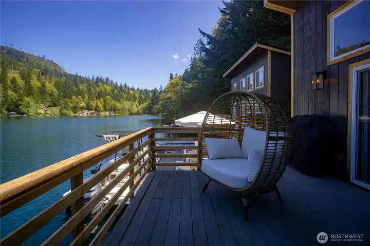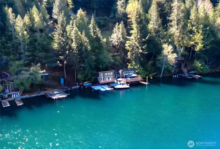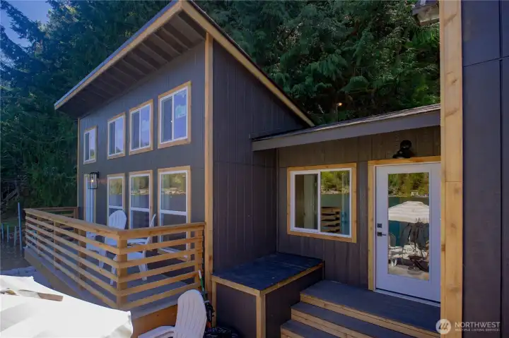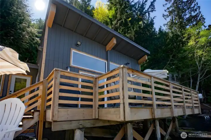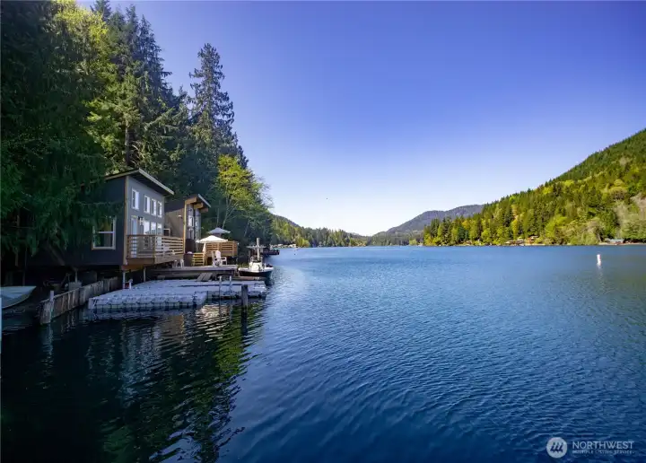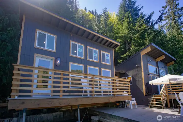 Rare opportunity to own a turn-key waterfront gem on peaceful Lake Sutherland near the Olympic National Park. Whether fishing, boating, or simple relaxation are on your list, this reimagined 930 sqft retreat delivers all the indoor and outdoor features to meet your needs. Inside you'll find a spacious primary bedroom, versatile loft, grand living area, and two bathrooms - including a newly added full bath and upgraded original - along with a cozy propane fireplace, vaulted ceilings, an open kitchen, and even enclosed breezeway (with laundry hookups!). The exterior and outdoor living design is equally thoughtful, featuring a private stairway from the road-side parking, down to two docks and two sprawling decks for easy entertaining, plus new siding, paint, and windows that take in the stunning views. Add in the structural reinforcement (new pilings, beams, and concrete footers) and grinder pump system already in place.. this home is now as solid as it is beautiful. Only 15 minutes to Port Angeles and minutes from the South Shore boat launch, book a tour with your Agent today and live the Lake Life this summer!