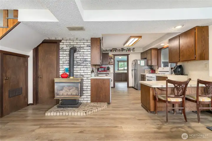 From the patio there is an office space (potential ADU) that has a kitchen space with room for stove and fridge + a loft.