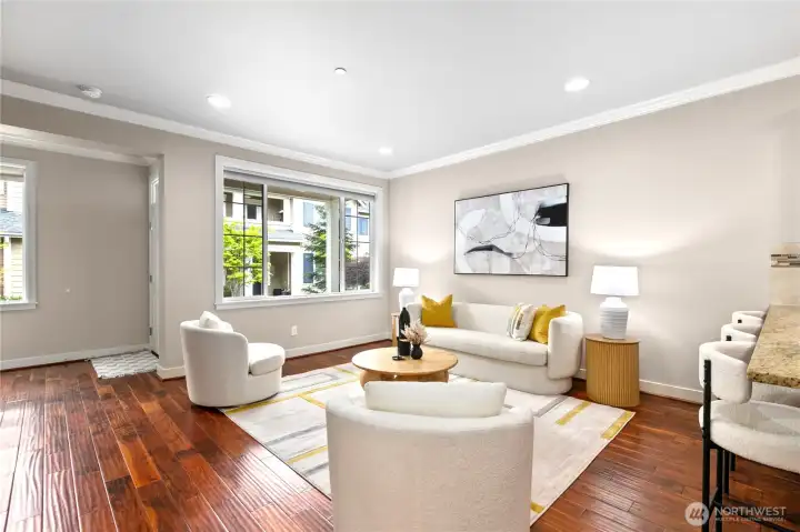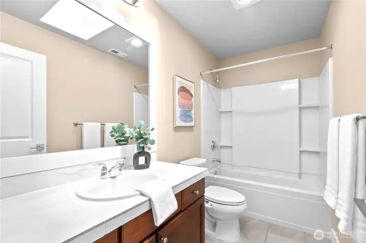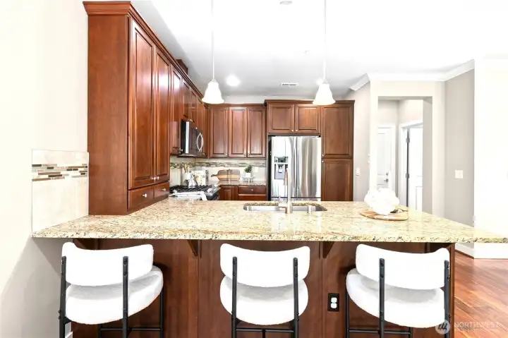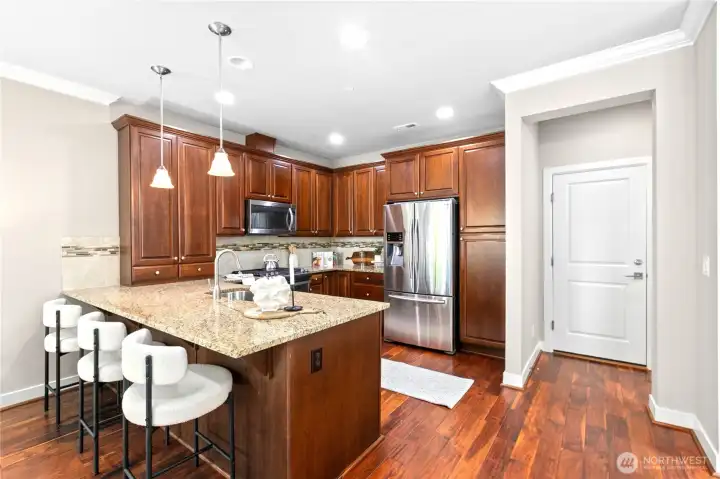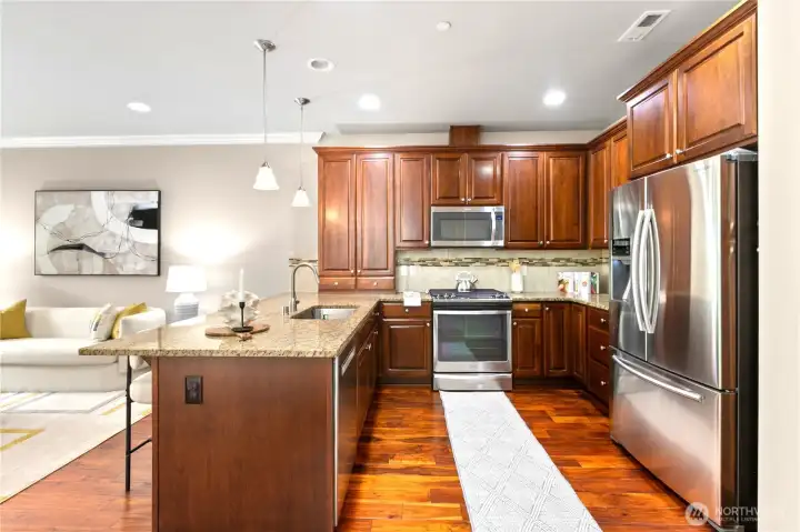 Exceptionally maintained Toll Brothers single-family home in the sought-after Sequoia Glen community. This east-facing corner lot home offers 3 bedrooms + loft and 2.5 baths, with multiple upgraded skylights on the second level. The home features a covered entry and an open-concept great room filled with natural light. Beautiful hardwood flooring runs throughout the main level. The gourmet kitchen boasts granite countertops, stainless steel appliances, and ample cabinetry, flowing seamlessly for everyday living and entertaining. The upper level offers a spacious primary suite with a walk-in closet and ensuite bath featuring a soaking tub, dual-sink vanity, and separate glass-enclosed shower. A versatile loft provides ideal space for a home office, media room, or play area. Convenient upper-level laundry. Community features include 1.3 acres of open space, park, and play structure. Prime location—minutes to a 60-acre park, Bella Bottega, Totem Lake Village, Downtown Redmond, light rail, and major tech employers including Microsoft, Google, Amazon, and Meta. Easy access to SR-520 and I-405. Top-rated Lake Washington School District with proximity to Norman Rockwell Elementary without crossing any roads. Pre-Inspected. Move-in ready.