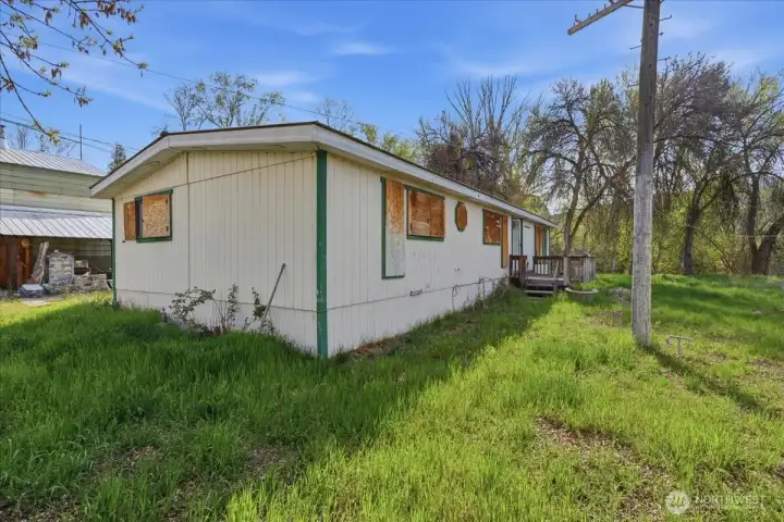 Perched above street level, this property offers a sense of privacy and peaceful seclusion, with scenic views overlooking the river and the surrounding neighborhood below. The manufactured home is in need of significant TLC, presenting a great opportunity for investors, renovators, or buyers looking to create their own vision. What truly sets this property apart is the setting, elevated for both perspective and privacy along with a generously sized shop, perfect for storage, hobbies, or workspace needs. A gated entrance adds to the secluded feel, making this a unique find with plenty of potential. Bring your ideas and unlock the possibilities of this one-of-a-kind property.