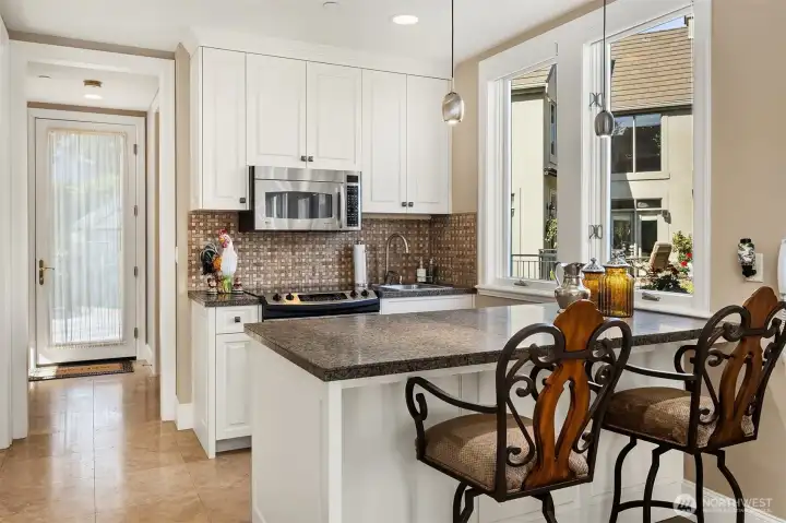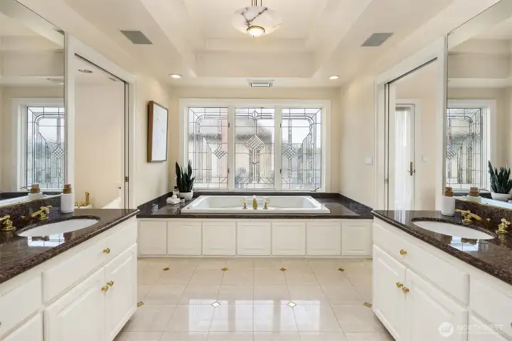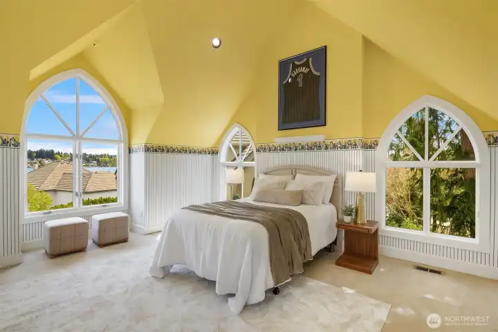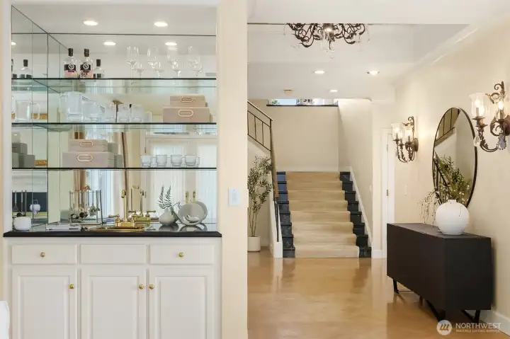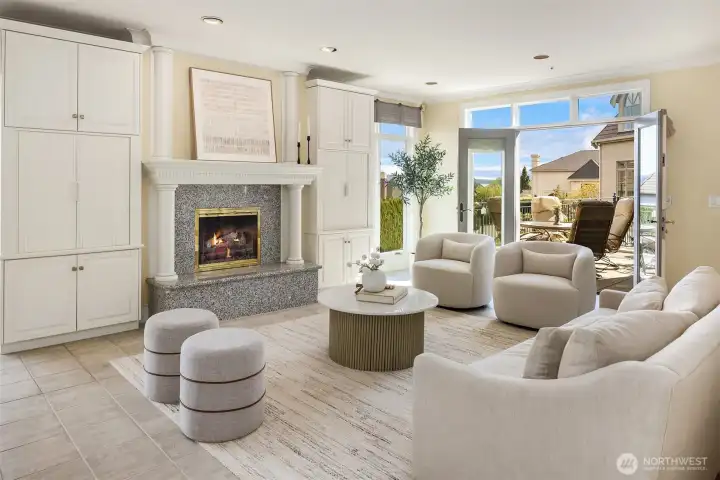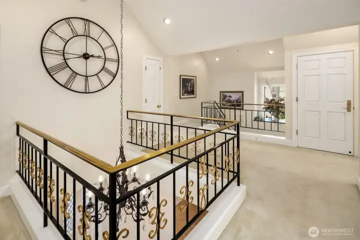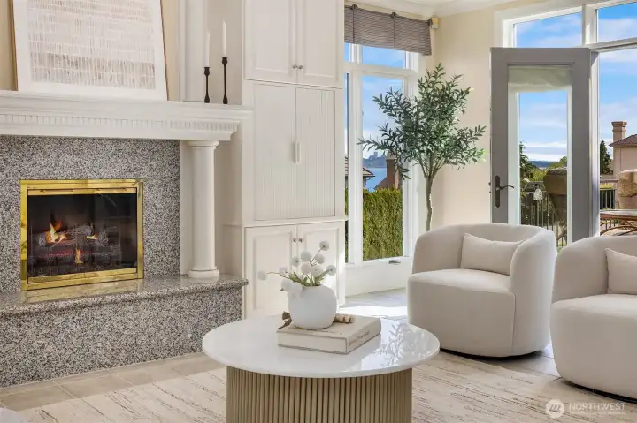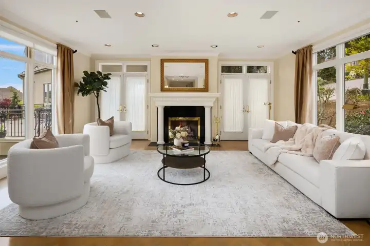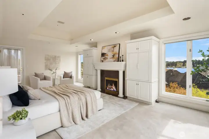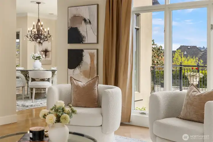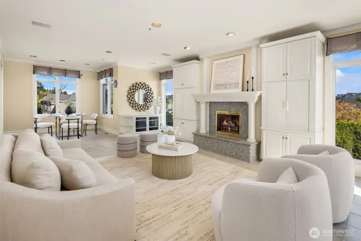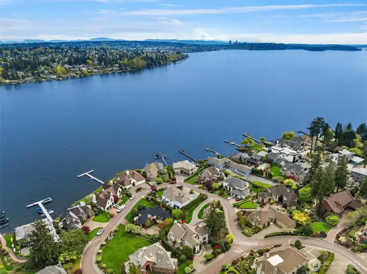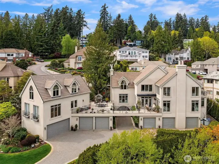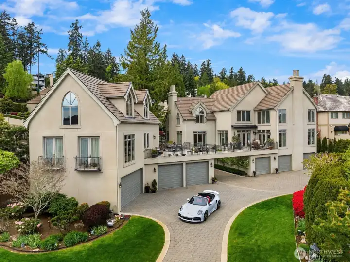 Tucked behind the private gates of Woodland Cove in Juanita, this rare Kirkland offering delivers an unparalleled blend of luxury, privacy, and waterfront lifestyle. Set on a combined double lot, the property provides exceptional scale and flexibility, featuring a beautifully appointed main residence alongside a ADU, ideal for guests or multigenerational living. Designed for both comfort and convenience, the main home includes an elevator and showcases stunning views of Lake Washington and Mount Rainier from multiple vantage points. Expansive living spaces are complemented by seamless indoor-outdoor flow, while the unique drive-through lot offers dual access points for effortless entry and exit. A true standout for collectors and enthusiasts, the property boasts garage space for up to seven vehicles. As part of the exclusive Woodland Cove community, residents enjoy access to private waterfront amenities, including shared shoreline and boat moorage on Lake Washington, bringing the best of Pacific Northwest living right to your doorstep. Private, versatile, and exceptionally rare, this is Kirkland living at its finest.