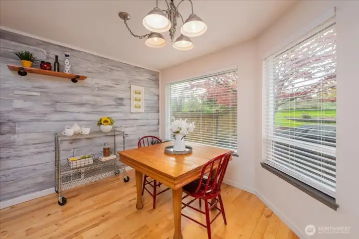 Dinning area allows for beautiful views of the backyard. WArm sunlight greets you in the morning.
