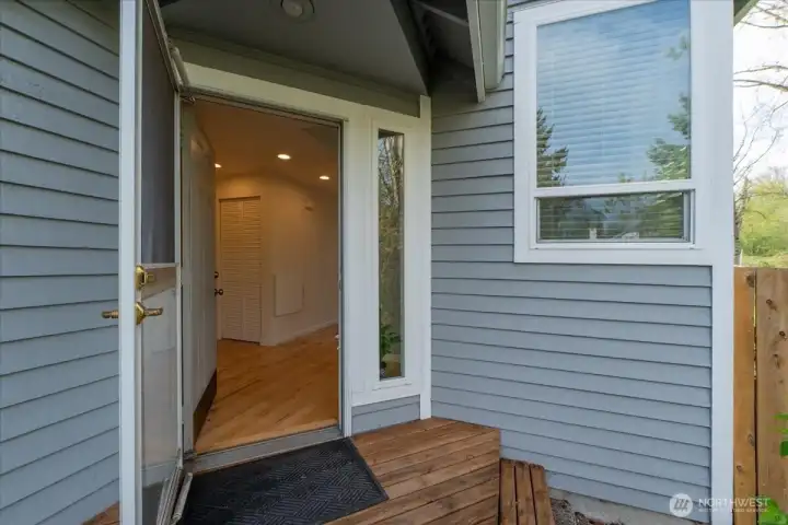 Main room over looks the stunning back yard. Big window lets in the view of a privacy tree.