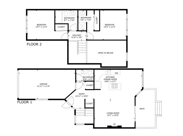Full bath with a second sink to allow for privacy while bathroom is in use.