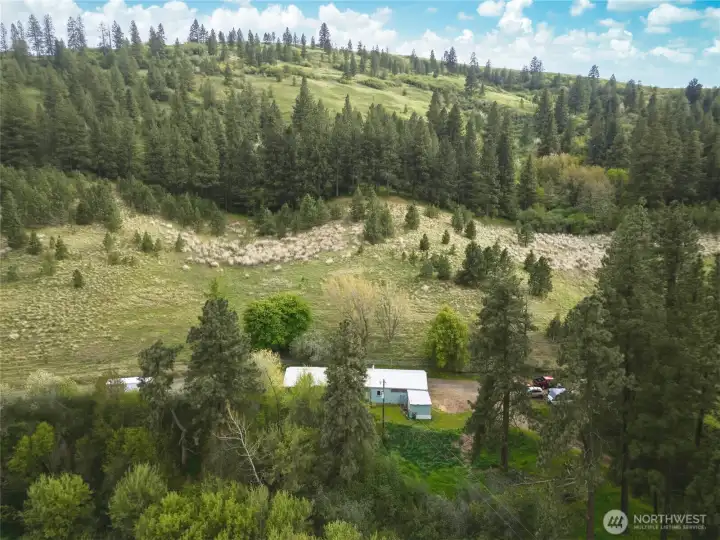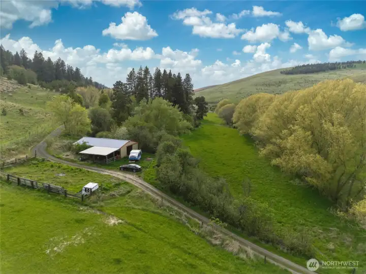 A rare opportunity to own a property that truly has it all—32 acres of privacy, versatility, and natural beauty. This exceptional acreage features a blend of wooded areas, fenced pasture, level ground, rolling slopes, and the seasonal Patit Creek meandering through the lower portion of the property. Ideal for horses or hobby farming, improvements include a horse barn, loafing shed, hay field, and established fenced pastures. The interior of this charming one-bedroom home has been tastefully updated and offers comfortable living, and also features an attached storage room, covered patio, and an attached two-stall carport. Year-round access is via a county-maintained, paved road. Set in a picturesque location with plenty of space and potential, this property also offers several potential building sites for a larger primary residence, if desired. This is a truly unique combination of lifestyle, function, and opportunity!