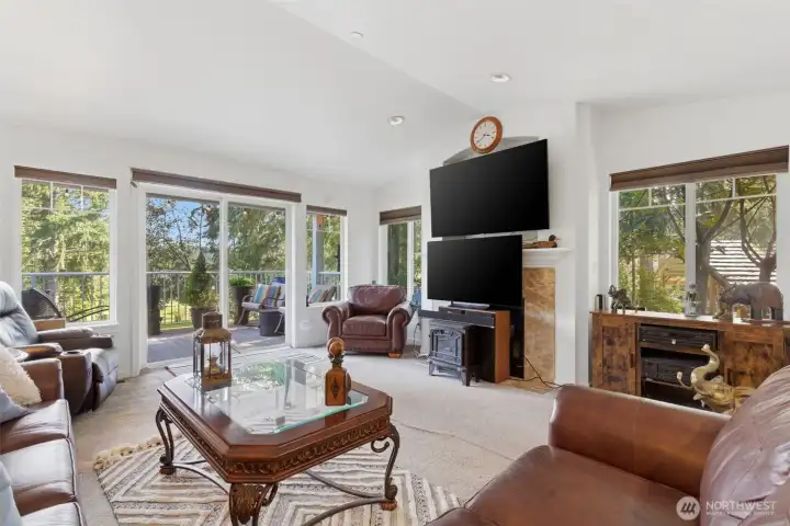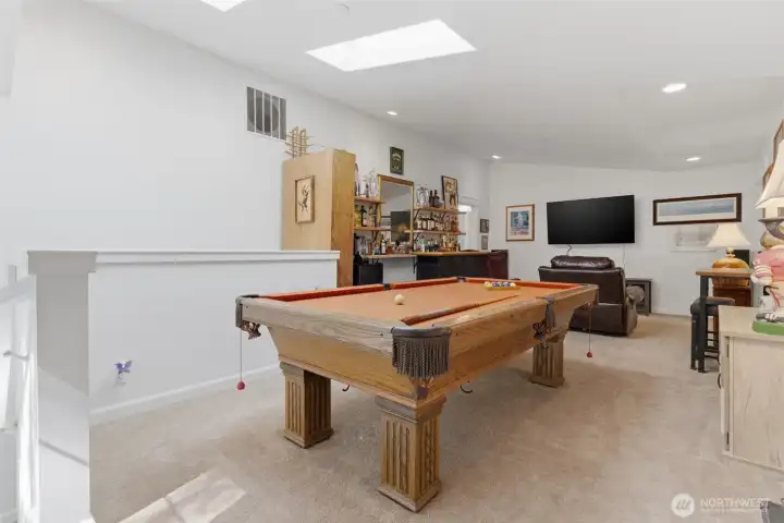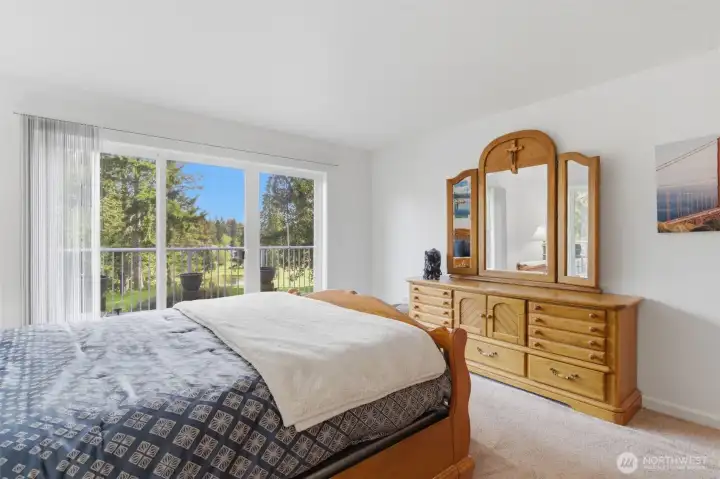 Enjoy effortless living in the sought-after Lakeland Village community, where golf course greens, lake access, and peaceful surroundings create a true retreat-style setting. Perfectly positioned on the 3rd tee box, this private condo offers front-row views of the course from an expansive deck—ideal for relaxing mornings or unwinding at the end of the day. Designed for comfort and flexibility, the home features convenient main-level living with an open, light-filled layout and seamless indoor-outdoor flow. The spacious deck is accessible from both the living area and the primary suite, creating a perfect extension of your living space, offering a quiet place to enjoy the surroundings. Upstairs, a generous bonus room is currently set up as a billiards lounge complete with bar and pool table (included), making it an ideal space for entertaining. A large third bedroom with its own private balcony overlooking the golf course, along with a full bathroom, provides excellent separation for guests or extended living. Thoughtful features throughout include hardwood floors, granite countertops, under-cabinet lighting, a cozy propane gas fireplace, abundant storage, and a spacious two-car attached garage. Recent updates including fresh interior paint, new carpet, and exterior improvements make this home truly move-in ready. Enjoy the benefits of a low-maintenance, no-hassle HOA that covers exterior upkeep, allowing you more time to take advantage of all Lakeland Village has to offer.