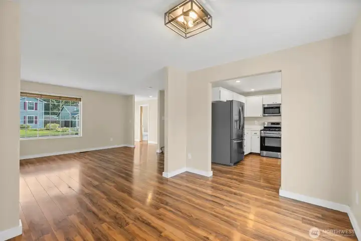 Move-in ready and easy to love, this 2-story home offers a bright, open layout in a quiet Yelm neighborhood. Natural light fills the home, creating a warm and welcoming space that flows from the living area into the kitchen, featuring stainless steel appliances and a gas range. A convenient guest half bath is located on the main floor, adding functionality for guests and daily use. Upstairs, you’ll find 3 comfortable bedrooms, including a primary suite with its own bathroom. The large, fully fenced backyard offers plenty of space to relax, entertain, or make it your own, giving you that extra room that’s hard to find. No HOA adds extra flexibility and freedom. Located near parks, trails, schools, and JBLM, with easy access to local amenities, this home offers a great mix of comfort, space, and convenience.