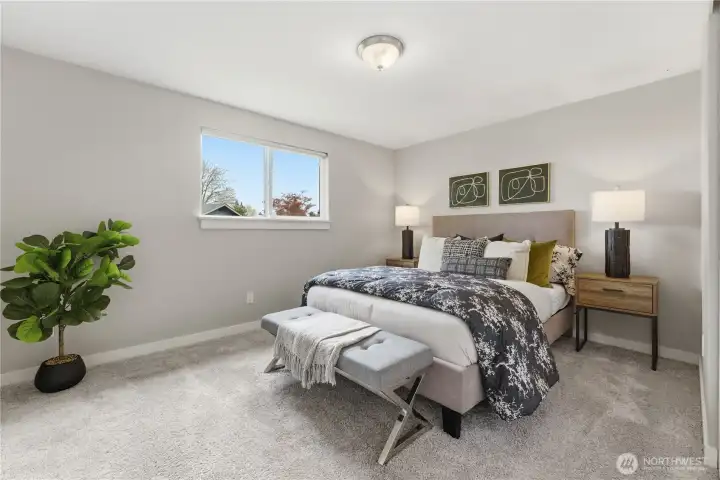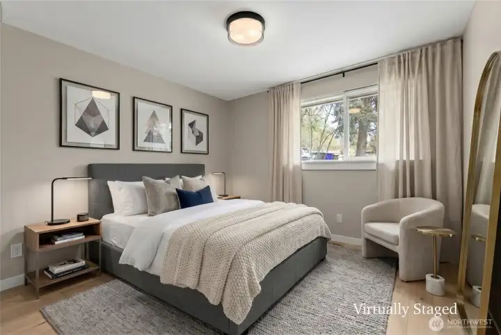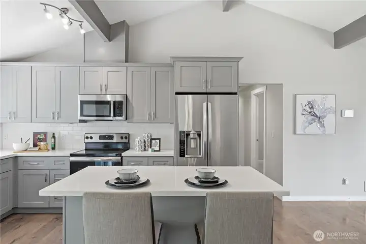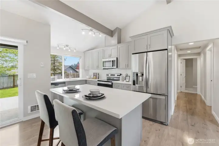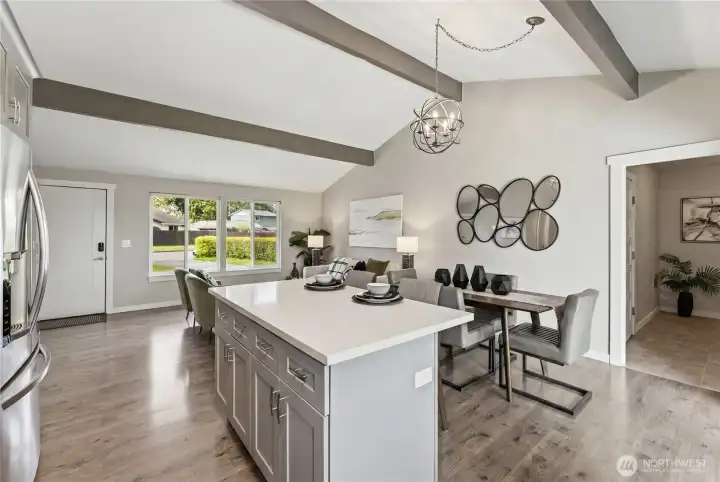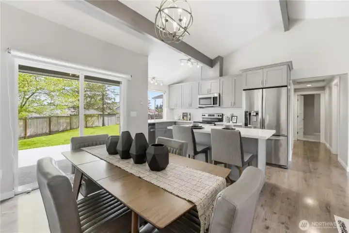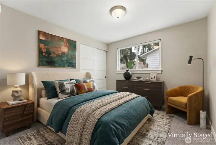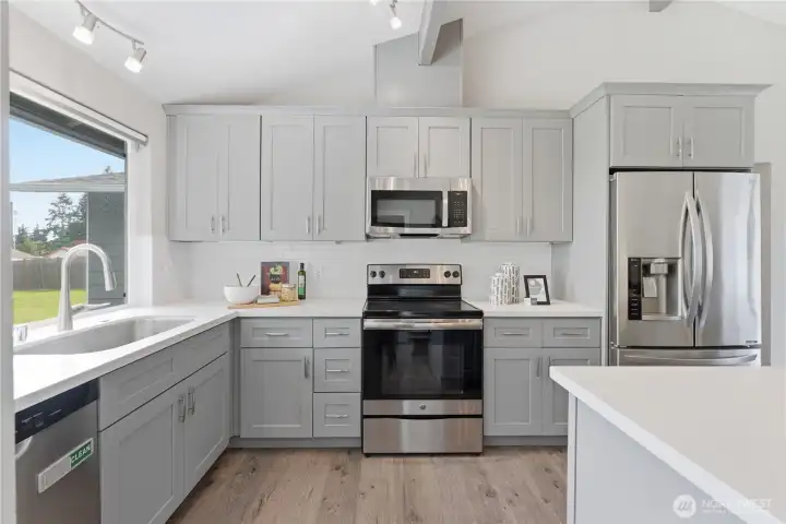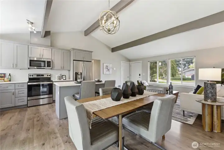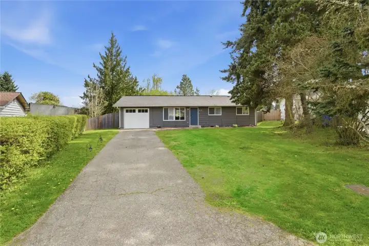 Spotless top-to-bottom remodel on a quiet cul-de-sac in the Evergreen neighborhood — and truly nothing left to do. This 4-bedroom, 1.75-bath single-story home was fully permitted and updated inside and out: new kitchen, bathrooms, doors, millwork, and flooring throughout, plus a new roof, windows, concrete patio, fresh paint, and fully fenced yard with pristine landscaping. A warrantied 10kW solar array adds long-term value and keeps utility costs low. The attached garage and efficient layout make everyday living a breeze. Ideally situated for Boeing employees with quick access to I-5 and SR-526, and served by highly rated Kamiak High School in the Mukilteo School District. Whether you're a first-time buyer or looking to right-size, this one checks every box. Pre-inspected and ready to move in!