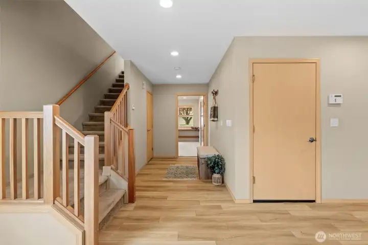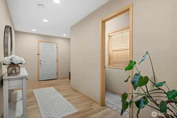 A bright and airy foyer provides a warm welcome for guests and a seamless transition into the heart of the home