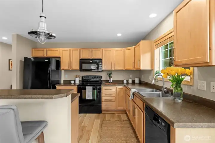 Culinary lovers will find comfort in this spacious kitchen with plenty of cabinetry storage and countertop space.