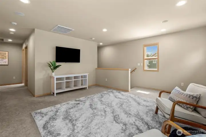 Discover the perfect 'bonus' room. This generous loft transformation provides a stylish transition between the upstairs bedrooms and serves as a central hub for evening relaxation