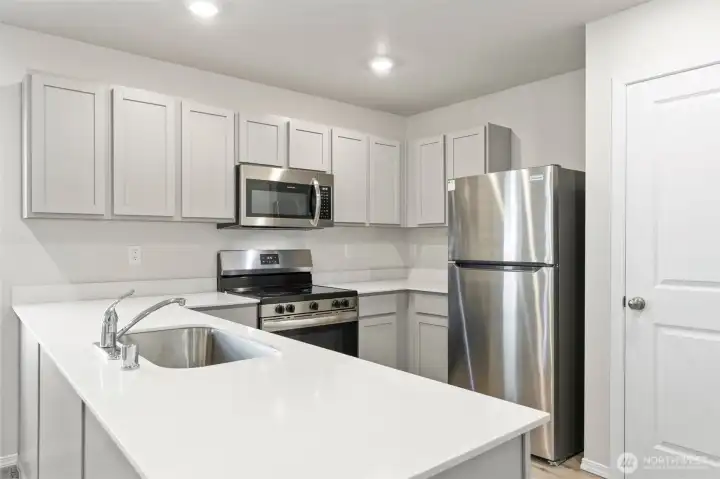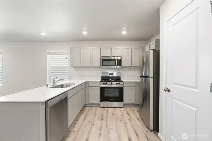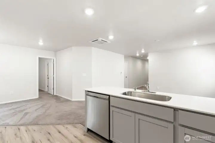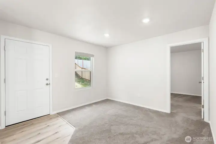 Still smells like NEW! This one-story home offers a large open-concept layout that seamlessly connects the family room, kitchen, and dining area, with easy access to the outdoor space. Perfect for entertaining! The primary suite is privately situated at the rear of the home and includes its own bathroom and a spacious walk-in closet. Two additional bedrooms offer comfortable, private spaces for family members or guests. Ask listing agent about assumable VA loan.