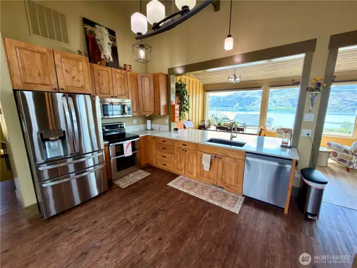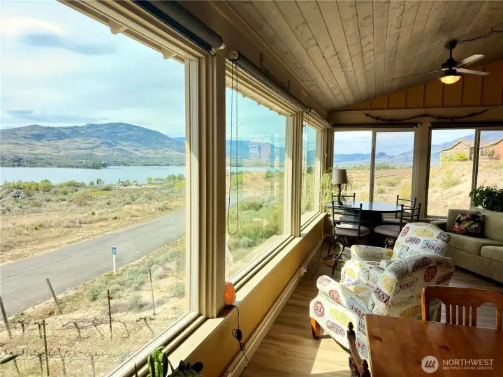 Welcome to one of the most coveted views in all of Veranda Beach...unobstructed, west-facing sunsets over Lake Osoyoos that feel like they were designed just for this home.This extensively remodeled residence has been dialed in from top to bottom, blending modern comfort with the laid-back luxury Veranda Beach is known for. Both verandas have been enclosed to create additional year-round living space which is perfect for soaking in the lake views no matter the season. Inside, you’ll find updated flooring, newer appliances, custom kitchen cabinetry, and a stunning built-in fireplace feature wall that anchors the living space with style and warmth. Exterior paint was refreshed just two years ago, giving the home a clean, move-in-ready feel.The oversized one-car garage is a rare bonus that provides extra room for storage, toys, or lake gear.Ownership here isn’t just about the home, it’s about the lifestyle. Veranda Beach offers resort-style amenities including a pool, private dock, private beach, marina with boat dock, and Tesla charging stations all within a vibrant, community-focused setting.Homes with this level of finish and this caliber of view rarely come available. If you’ve been waiting for “the one” at Veranda Beach, this is it!