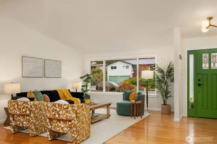 Lovely mid-century on 5900 square foot, level lot in the heart of View Ridge. This 3040 square foot beautifully remodeled home features 3 bedrooms on the main, including a primary suite with 3/4th bath and second full bath. Gourmet kitchen with oversized eating area, new appliances, counters, cabinets, and lighting, opens to the deck for al fresco dining and fully fenced backyard with patio for summer BBQs. Open light-filled living/dining area, gleaming hardwood floors, and cathedral ceilings complete the main floor. Lower level features full bath, 4th bedroom, and large rec room, plus separate family room with a kitchen plumbed and a separate entrance -perfect for a future ADU or guest quarters. Heat pump with A/C. Also easy to add at least two more bedrooms in the basement. 2 car garage plus off street parking for 2 more cars. Close to parks, restaurants, markets, and schools. Easy access to I-5.