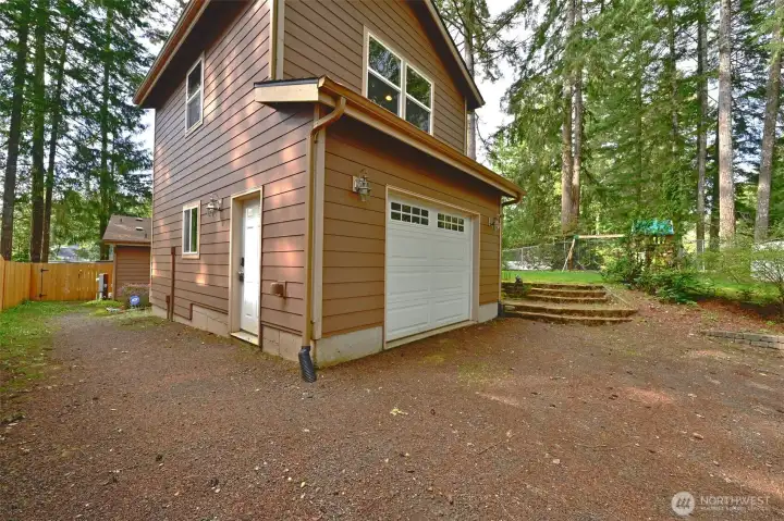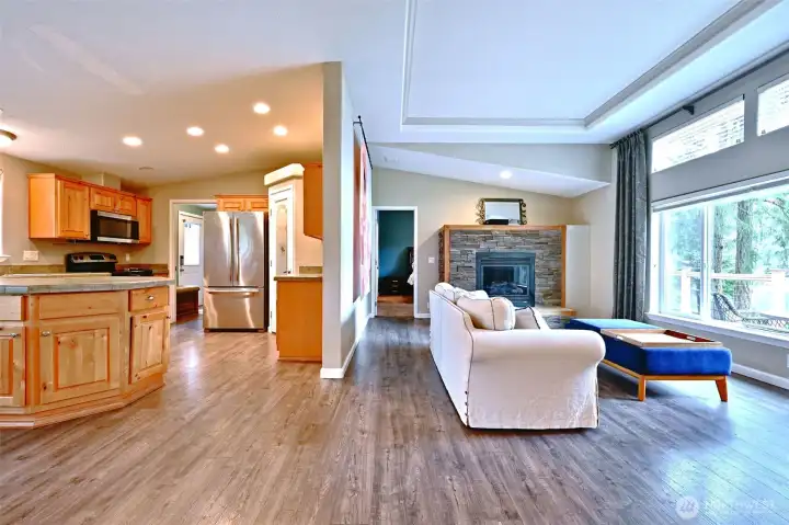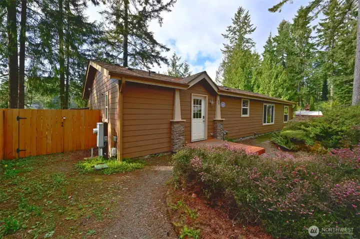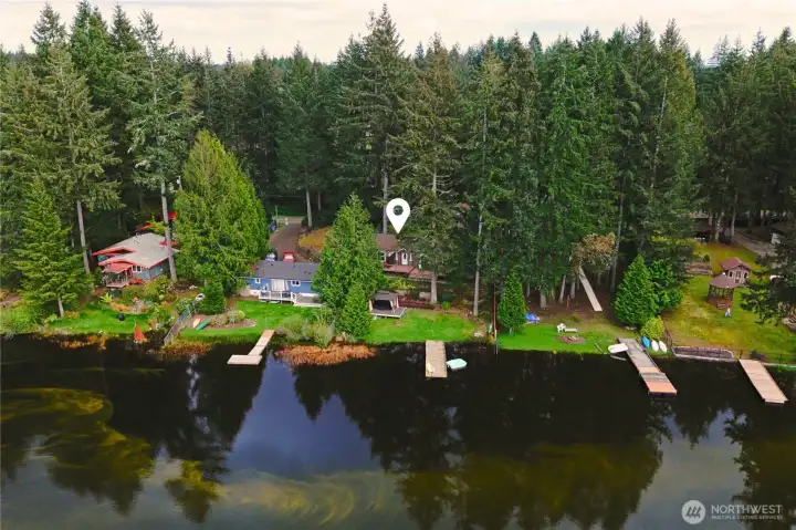 Private dock and 71 ft of no-bank frontage on sought-after Bear Lake set the stage for true lakefront living, where you can fish for stocked bass and trout, paddle, or simply relax right from your backyard. This pristine, turn-key 3-bedroom home showcases pride of ownership throughout with new vinyl flooring, new carpet in the primary, vaulted ceilings, and a light-filled layout enhanced by a solar tube. The spacious kitchen features hickory cabinetry, stainless appliances, a walk-in pantry, and flows seamlessly into the dining and living areas with a cozy propane fireplace. The primary suite offers a spa-like bath with dual vanities, while additional upgrades include a new heat pump (2024) and generator hookup for added peace of mind. Outdoor living shines with a new Trex deck, gazebo, landscaped yard, playset, and direct lake access. The detached shop features durable Hardie Plank siding, and the oversized garage includes a finished flex space above with a propane stove, ideal for a studio, guest space, or home office. Just minutes to Hwy 16 and 3, with no CC&Rs, Group B water ($115/2 months), and all appliances included. Enjoy peaceful, quiet lake living with nearby trails and community park access, where days are spent on the water and evenings unwind in a truly serene setting.