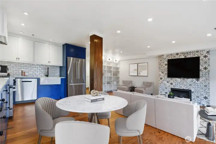 Rare opportunity to own a beautifully remodeled, spacious 2-level condo at the coveted Nautica Condominiums! This 6th-floor, 3-bedroom, 2.5-bath home features an open-concept layout filled with natural light and a private deck with stunning South Lake Union water views. The chef-inspired kitchen offers a commercial-grade convection gas range, stainless steel appliances, and an elegant blend of white quartz and granite countertops, while recessed lighting and a cozy gas fireplace enhance the inviting living space. Additional highlights include in-unit washer and dryer, a newer hot water tank, fresh interior paint, and a building that completed a full exterior renovation in 2022. Enjoy a well-funded, professionally managed, pet-friendly HOA and an unbeatable location just minutes to the Space Needle, Climate Pledge Arena, South Lake Union, and Downtown Seattle, with easy access to Mercer St, I-5, and abundant transit options. Move in ready, pre-inspected!