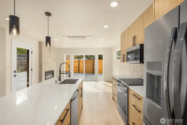 Welcome to this thoughtfully designed 2-bedroom home by local builder New City Homes, ideally located in the heart of Greenwood. The main level features an open-concept layout with a light-filled kitchen, dining, and living area; perfect for everyday living and easy entertaining. A well-appointed kitchen with ample storage and workspace anchors the home, while large windows bring in natural light throughout. Upstairs, you’ll find two bedrooms and two bathrooms, including a comfortable primary suite with luxurious felling en-suite bath. Thoughtful separation of living and sleeping spaces offers both functionality and privacy. Enjoy your private rooftop deck - an ideal space to relax, entertain, or take in territorial views. Located just moments from Greenwood’s popular restaurants, coffee shops, and neighborhood amenities, with easy access to nearby parks, transit, and the energy of Ballard, this home offers the best of convenient Seattle living.