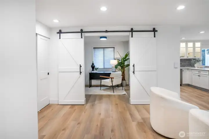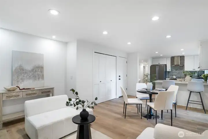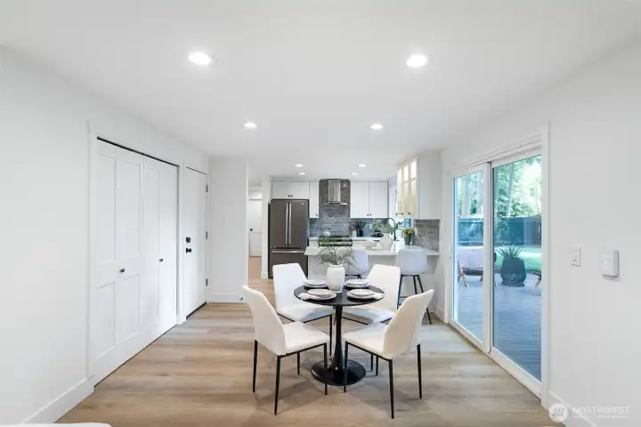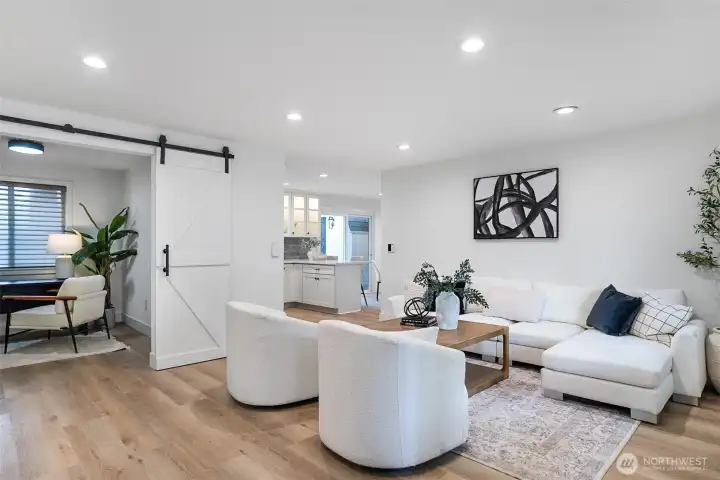 The Kirkland address you've been waiting for. Tucked into one of the area's most walkable pockets, this home puts daily life within reach — steps from neighborhood parks and a nearby elementary school, with the Village at Totem Lake, Evergreen Health, and I-405 just minutes away. Google, Microsoft, and downtown Kirkland are an easy commute from the driveway. Inside, this thoughtfully updated 4-bedroom home lives bigger than its footprint — open, bright, and quietly luxurious. New flooring, fresh paint, new tile, new baseboards, and designer landscaping throughout. Natural light pours through every room, creating a sense of ease that's hard to find at this price point. Smart-home features bring modern convenience to everyday living: electric automated blinds, smart alarm, Ring security, and a polished epoxy-finished 2-car garage ready for vehicles, gear, or weekend projects. A private fenced backyard offers a true outdoor retreat — perfect for summer evenings and morning coffee. Out back, a detached flex space adds versatility: ideal as a home office, creative studio, gym, or playroom. All inside the coveted Lake Washington School District (buyer to verify). Turnkey, move-in ready, and genuinely rare at this address — the kind of home that checks every box and still surprises you when you walk through the door.