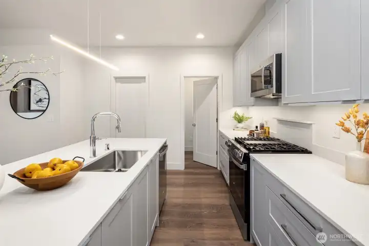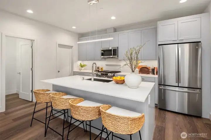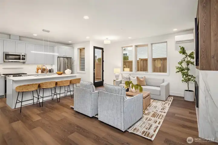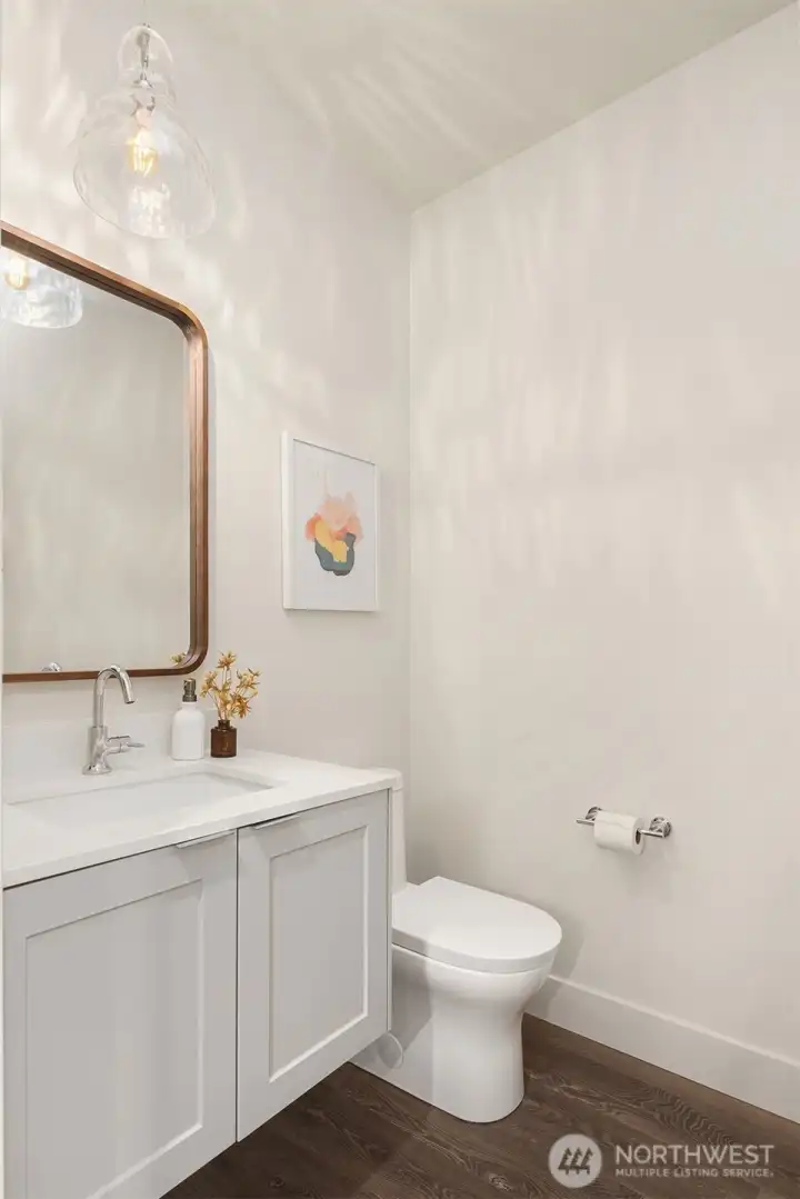 Beautiful new construction home in Kirkland's coveted West of Market neighborhood. This fantastic two-story layout has it all. Main level has two entry doors and features open dining and living room with cozy fireplace. Functional kitchen is centered around convenient island plus ample storage and pantry space. Powder bath rounds out main floor - making hosting guests a breeze. Upstairs offers dual primary suites plus functional office nook. Enjoy proximity to Lake Washington, Waverly Beach Park, and downtown Kirkland. Assigned EV-ready parking space completes this remarkable home!