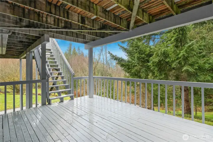 Huge deck spans the length of the home offering quiet outdoor enjoyment.