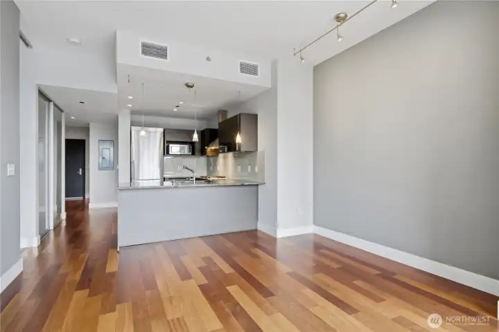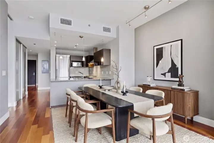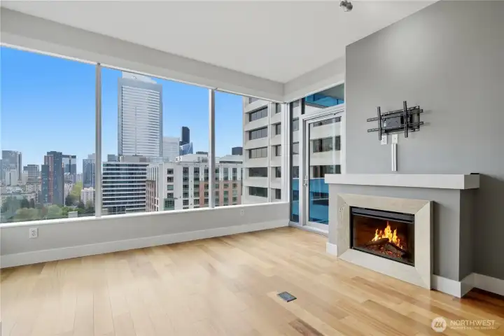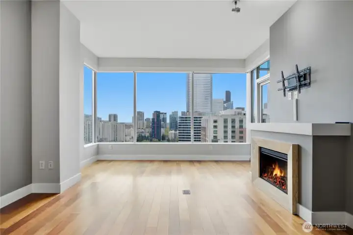 Experience elevated city living from the 29th floor at Olive 8, where sweeping skyline views, expansive windows, and a private balcony create a true in-city retreat. Thoughtfully designed for both comfort and style, this residence features an open-concept kitchen, a spacious primary suite, and a spa-inspired bathroom. Residents enjoy a full suite of upscale amenities, including 24-hour concierge service, a fully equipped fitness center, rooftop deck with BBQ area, dog run, and inviting resident lounge spaces. Set within the iconic Olive 8 tower above the Hyatt, with optional access to select hotel amenities such as the indoor pool, sauna, and hot tub. Ideally located in the heart of downtown Seattle, just moments from South Lake Union, premier dining, shopping, major employers, and Westlake light rail, offering effortless connectivity and vibrant urban living. Includes 1 assigned parking space and 1 storage unit—rare offerings in a premier downtown setting. No rental cap reported; buyer to verify current HOA rules and restrictions.