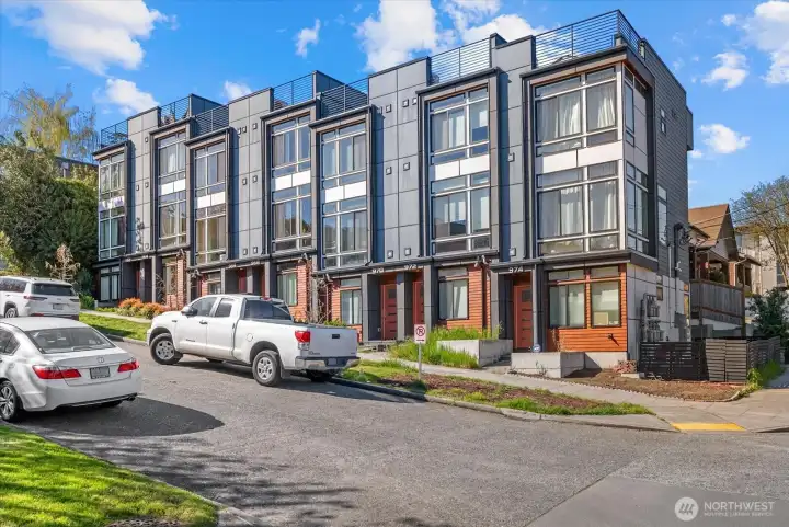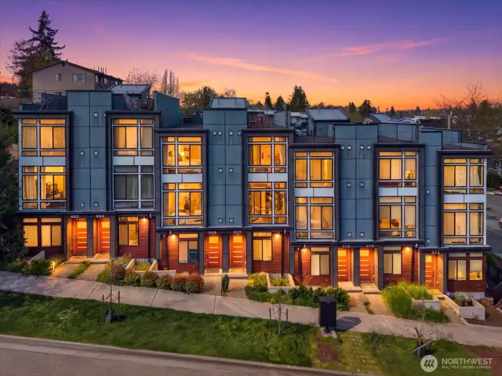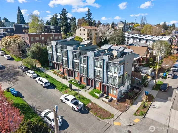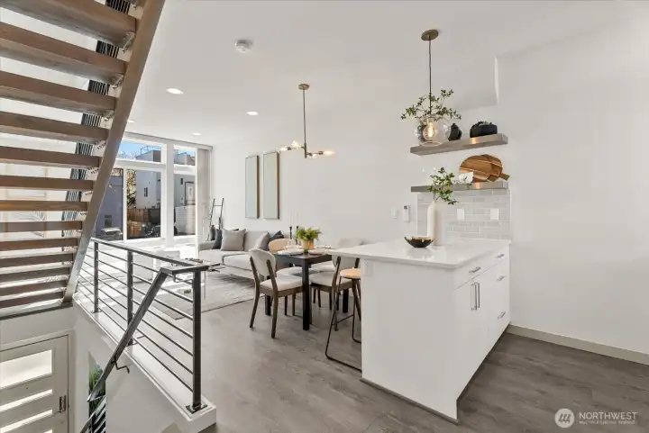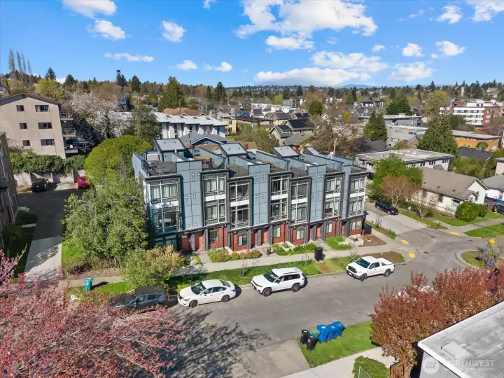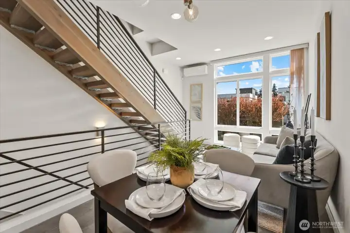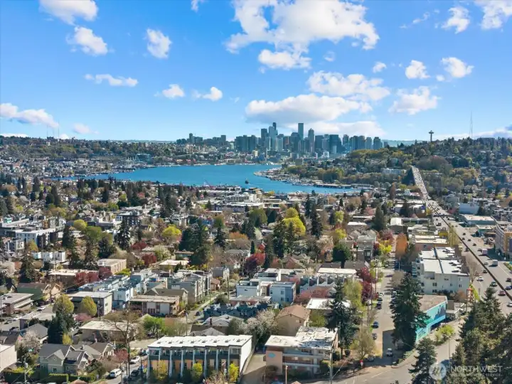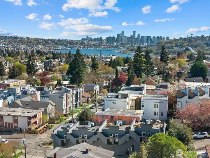Amazing location right in the heart of Wallingford w/ dynamic views of the Seattle Skyline, Mt. Rainier & South Lake Union W/ LARGE ATTACHED GARAGE! Boasting a functional floor plan & eco-friendly design w/ an abundance of natural light flooding each room. Chef's kitchen w/ SS appliances, sleek slabs of quartz & state-of-the-art solid wood floating staircase. Spacious top floor primary suite w/ deluxe spa-like bath. Second bedroom on lower-level with own bath and flex/bonus space upon entry. Large roof deck with outstanding views of the City, Lake and Rainier. Located within mins of all Wallingford amenities: shops, boutiques, parks, breweries & more! Close to Green Lake, Woodland Park Zoo, Gas Works Park & South Lake Union! Attached garage that can fit more than your car, plenty of storage space! Ductless mini splits for heating and cooling! WalkScore of 91! 4-Star Built Green!