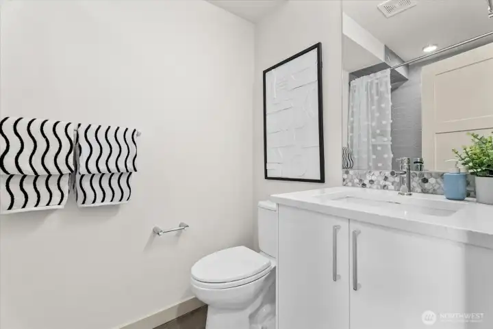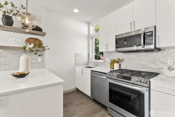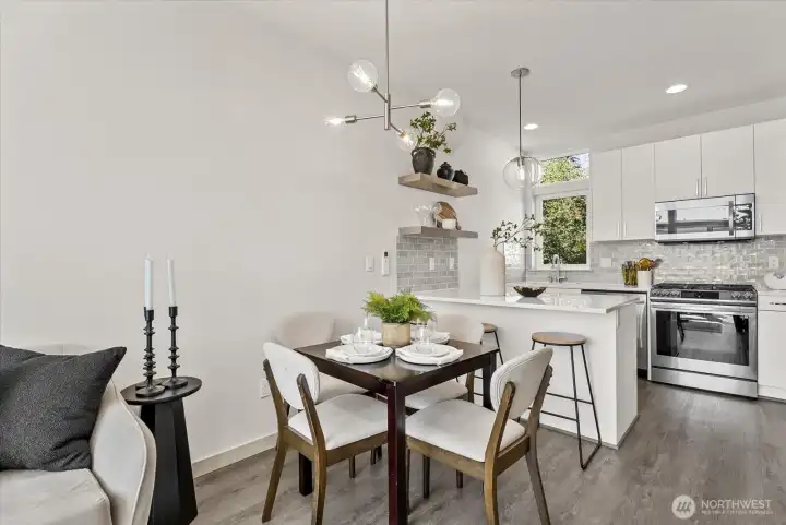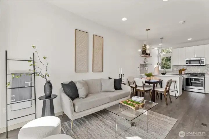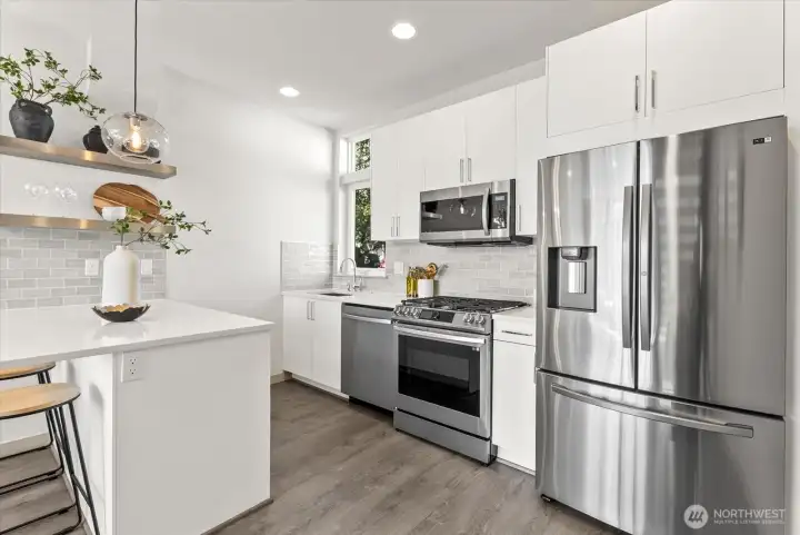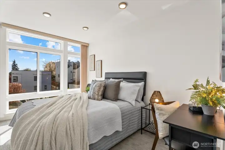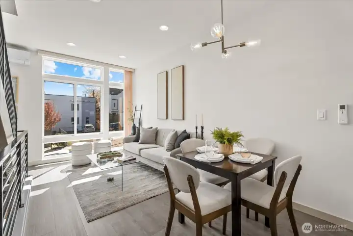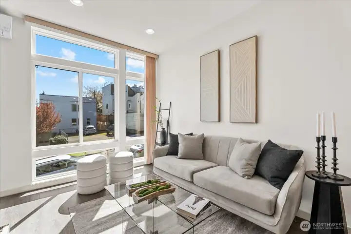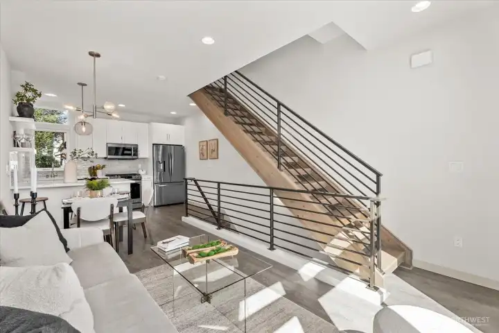 Amazing location right in the heart of Wallingford w/ dynamic views of the Seattle Skyline, Mt. Rainier & South Lake Union W/ LARGE ATTACHED GARAGE! Boasting a functional floor plan & eco-friendly design w/ an abundance of natural light flooding each room. Chef's kitchen w/ SS appliances, sleek slabs of quartz & state-of-the-art solid wood floating staircase. Spacious top floor primary suite w/ deluxe spa-like bath. Second bedroom on lower-level with own bath and flex/bonus space upon entry. Large roof deck with outstanding views of the City, Lake and Rainier. Located within mins of all Wallingford amenities: shops, boutiques, parks, breweries & more! Close to Green Lake, Woodland Park Zoo, Gas Works Park & South Lake Union! Attached garage that can fit more than your car, plenty of storage space! Ductless mini splits for heating and cooling! WalkScore of 91! 4-Star Built Green!