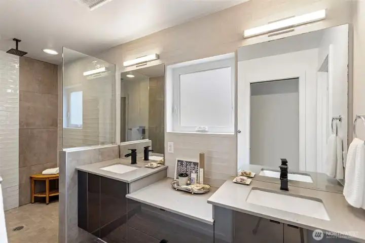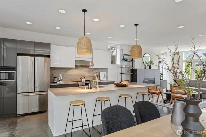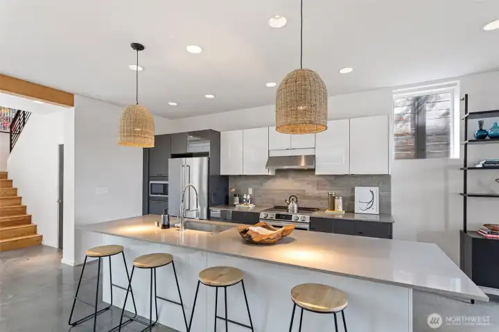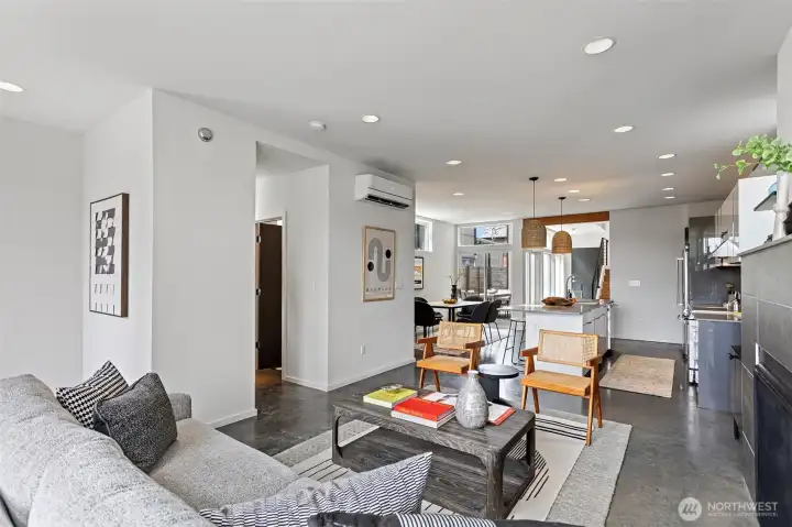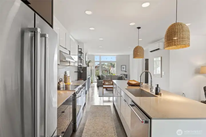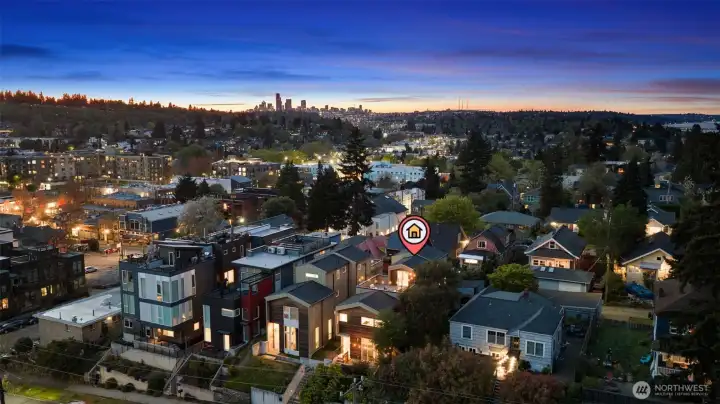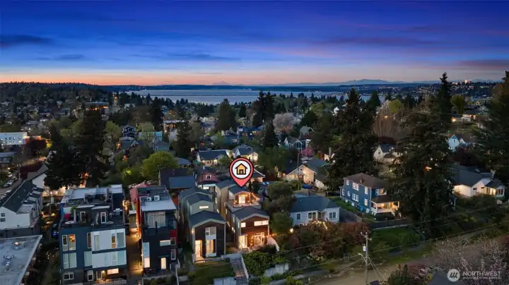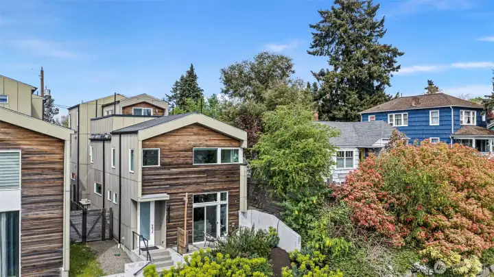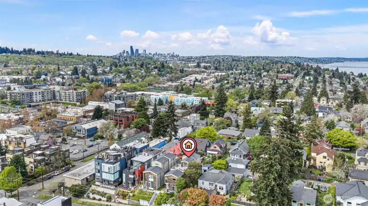 Stunning modern free-standing home privately sited on a street-to-alley lot, offering rare separation from the everyday with level alley access to a spacious 2-car garage + EV charging. Refined, livable finishes throughout. Polished concrete floors anchor the main level, where an open kitchen and dining area flow seamlessly to a tucked-away courtyard, perfect for summer dinners or a quiet morning start. Thoughtful, flexible floor plan with four true bedrooms, including three on the second floor. Two primary suites provide options for how you live today and how you grow into the home over time. Top-floor retreat captures territorial and city views, opening to a generous rooftop deck, ideal for entertaining or unwinding above it all. A/C on every level for year-round comfort. Ideally situated between the best of two worlds - urban amenities in one direction and peaceful refuges in the other. Two blocks to Columbia City, one of Seattle’s most vibrant, character-rich neighborhoods, home to a beloved farmer’s market, music venues, cafes, indie shops, and easy light rail access. Nearby green spaces and parks like Genesee, Mt. Baker & Seward Park with miles of Lake Washington shoreline offer quiet calm and recreation just moments away!
