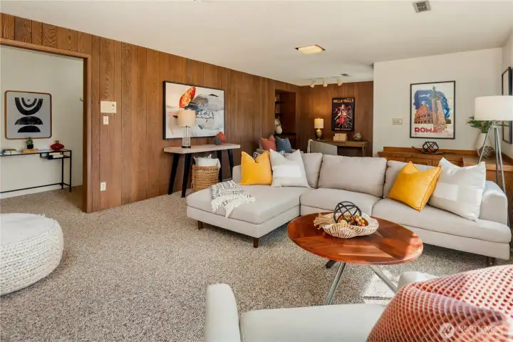 Showstopper daylight basement with huge family room and tall ceilings.