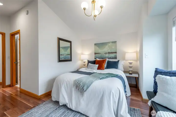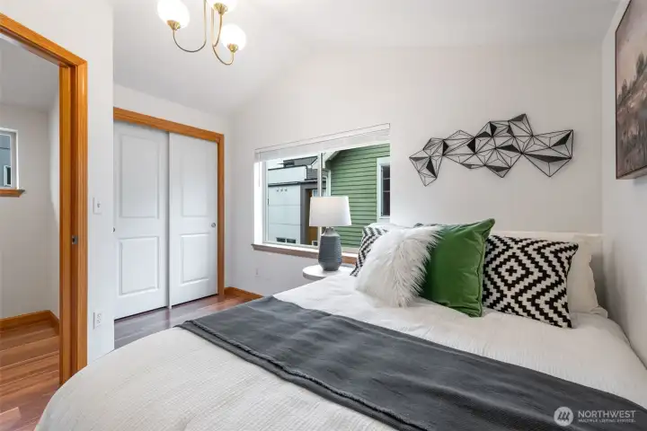 Rare stand-alone home with no shared walls, no HOA, and an attached garage—an exceptional find! Ideally located in the sought-after Stumbletown micro-neighborhood of West Woodland, quaintly tucked between Phinney Ridge and Ballard. The main living level on the second floor features an open-concept layout with an updated kitchen, eating bar, dining space, and a spacious living room anchored by a cozy gas fireplace. Upstairs, the vaulted ceiling primary suite offers an en-suite bath and is complemented by a second vaulted guest bedroom. Enjoy morning coffee on your balcony or gardening in the private, fenced front yard. Leave the car behind and explore nearby parks, cafes, and the vibrant 65th Street corridor—home to local favorites like Mainstay, Ginger & Scallion, and Bambino. Easy access to Hwy 99 and nearby transit makes commuting downtown seamless.