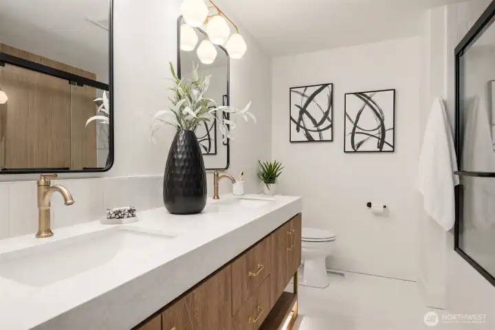 Discover the perfect balance of modern luxury and tranquil living in this fully remodeled home in desirable Wellington Hills. Set on a private, wooded lot, this 4-bedroom + office residence has been thoughtfully reimagined with high-end finishes and a cohesive, design-forward approach—offering a truly move-in ready experience that lives like new construction. Step inside to light-filled, open living spaces enhanced by clean lines, wide-plank flooring, and a warm, neutral palette. The functional layout offers flexibility for everyday living and entertaining, with elegant French doors adding character and separation where desired. Abundant storage and well-planned spaces reflect the needs of today’s buyer. The chef’s kitchen is a standout, featuring quartz countertops, soft-close cabinetry, and a premium stainless appliance suite including Thermador and KitchenAid—designed for both performance and style. Enjoy seamless indoor-outdoor living with a spacious, covered patio complete with skylights and overhead heaters—ideal for year-round entertaining. The backyard offers a peaceful retreat, backing to mature trees for privacy and showcasing curated landscaping with fruit trees and garden space. Additional highlights include RV parking, a quiet neighborhood setting, and close proximity to Woodinville’s amenities, wineries, and commuter routes. A rare opportunity to own a turn-key home with refined finishes in one of Woodinville’s most sought-after communities.