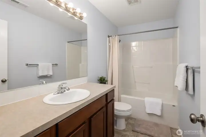 There are homes that simply check boxes… and then there are homes that live well. This SOUTH-facing gem located on a cul-de-sac welcomes you with light that lingers and a layout that truly understands everyday living. On the main level, a versatile bedroom or den sits alongside a ¾ bath—perfect for guests, quiet workdays, or multigenerational ease. Upstairs, life expands with four additional bedrooms and a generous bonus room—space to gather, create, and grow into. Every detail reflects D.R. Horton's creaftsmanship. Freshly painted exterior. Engineered hardwoods that carry warmth throughout the main level. A beautifully appointed kitchen with tile counters and stainless steel appliances—designed for both function and connection. Central A/C for year-round comfort. And a home that has been pre-inspected, offering confidence from the very beginning. Step outside and you’ll find what truly sets this property apart—a huge backyard, complete with patio space ready for summer evenings, celebrations, or simply breathing in the quiet. And then there’s the lifestyle. Just steps from Tambark Creek Park, and within the sought-after Everett School District, with top-rated Tambark Creek Elementary and Gateway Middle nearby. A neighborhood you don’t just move into… but belong to. This is a home where care has been poured in, memories have been made, and the next chapter is ready to begin. Come experience it for yourself.