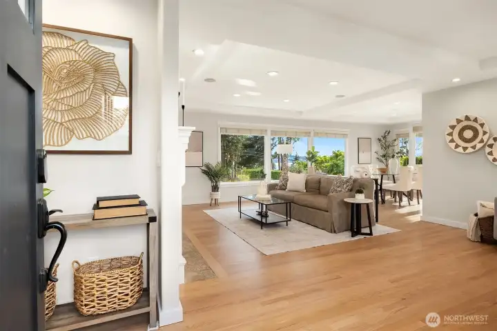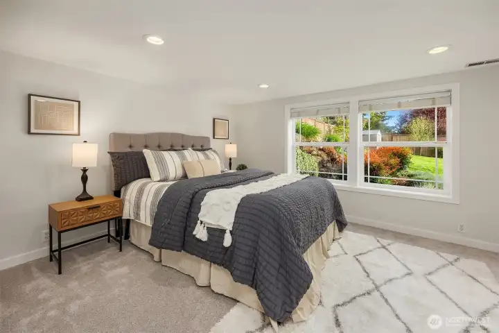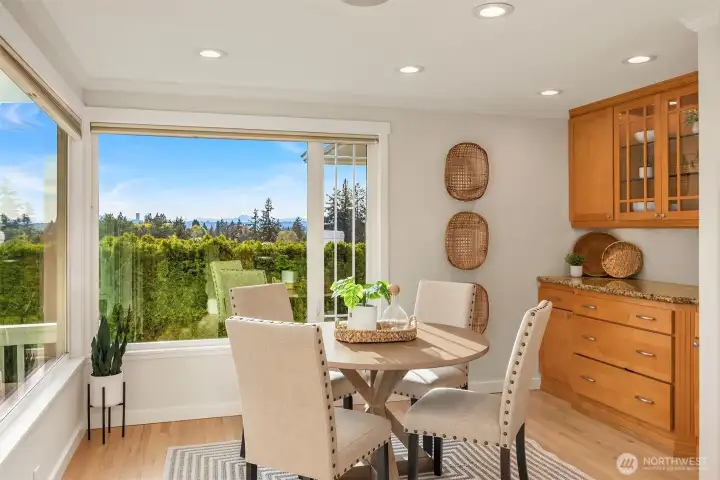 Timeless curb appeal meets elevated living in the coveted Vuecrest neighborhood of Bellevue. This beautifully refreshed 3-bedroom, 2-bath, 2,640 sq ft home, complete with a den and bonus/rec room is filled with abundant natural light and captures glimpses of Lake Washington, the Olympic Mountains, city and stunning sunset views that create a warm and inviting backdrop for everyday living. Thoughtfully updated throughout, the home features fresh interior paint, newly refinished hardwood floors, brand-new carpet, closet organizers in all bedrooms and modern LED lighting; all enhancing its bright, airy feel. Step outside to experience exceptional outdoor living perfect for both entertaining and unwinding. The spacious yard offers room to gather and play, while the covered deck provides a year-round retreat to take in the breathtaking scenery. Subtle landscape lighting further enhances the home’s welcoming presence. Inside, the functional layout offers flexibility for today’s lifestyle, with a dedicated den ideal for a home office, guest space, or potential 4th bedroom. Private and peaceful, yet just minutes from Downtown Bellevue with easy access to I-405, this home offers the perfect balance of tranquility and convenience. Enjoy close proximity to Bellevue Downtown Park, Bellevue/Lincoln Square for shopping and dining. Located in the highly rated Bellevue School District.