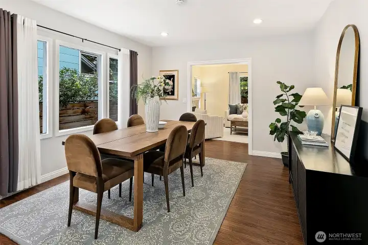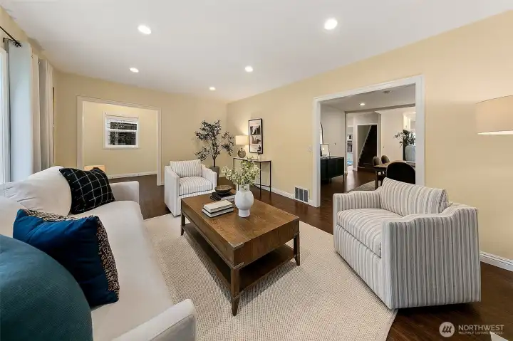 The main floor enjoys light from many directions through large picture windows.