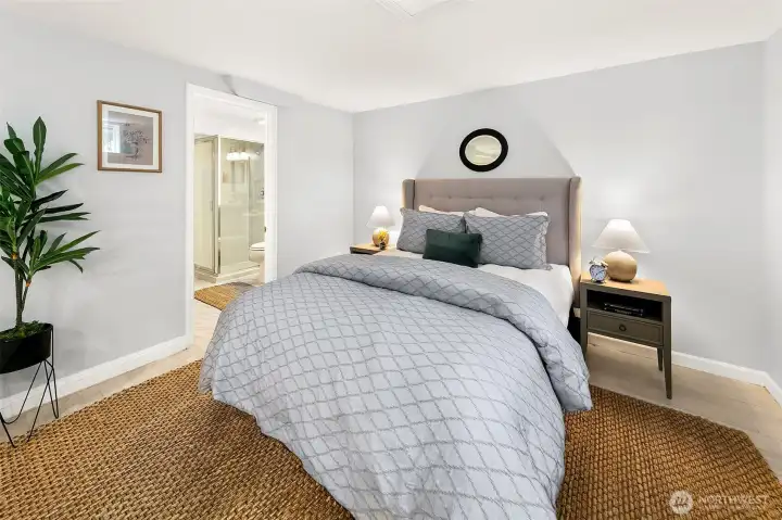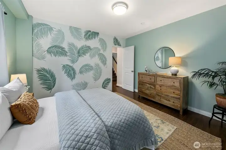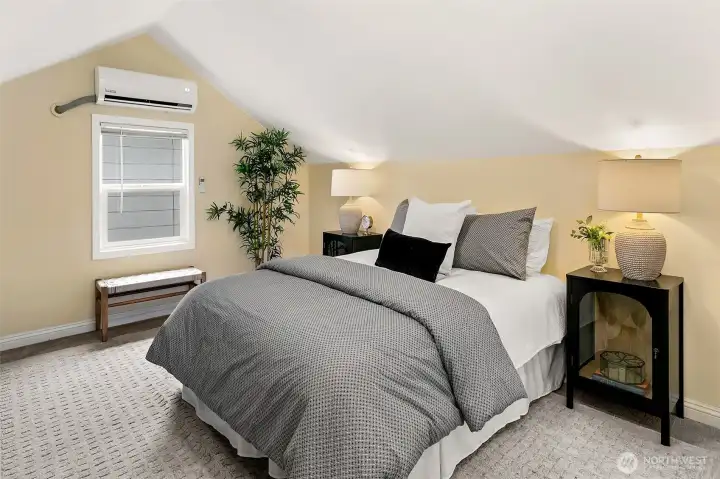 One of two bedrooms found on the main level.