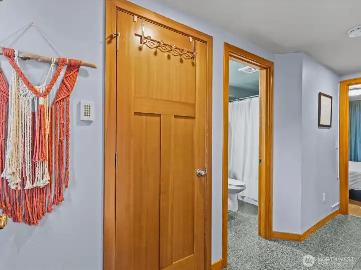 Front entryway leads to lower bedroom, lower bathroom, and back deck. Laundry on this floor as well.