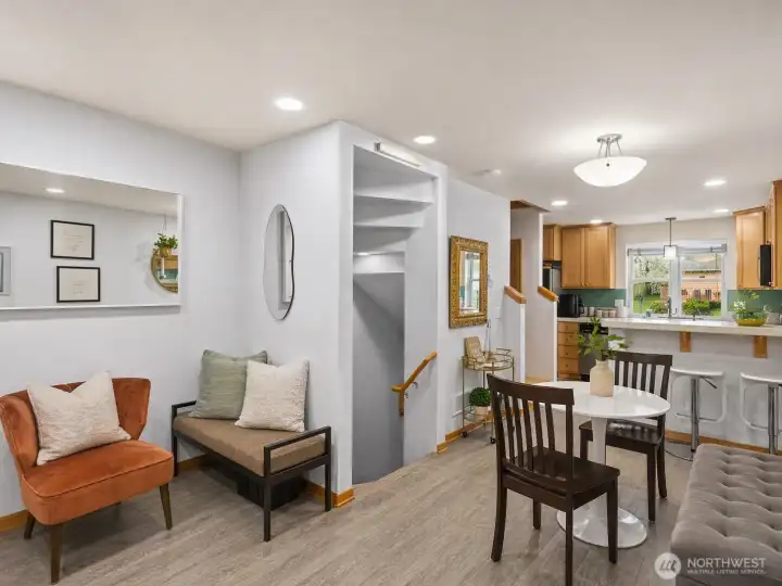 Stylish three-bedroom townhome in sought-after Highland Park—an exceptional opportunity for both homeowners and investors alike. This thoughtfully designed middle unit offers a seamless blend of comfort, functionality, and proven income potential, with a strong Airbnb track record and being sold fully furnished for immediate turnkey use. The main level features a light-filled, open-concept living, dining, and kitchen area, highlighted by maple hardwood floors, custom built-ins, a designer tile backsplash, and a spacious breakfast bar—perfect for everyday living or hosting guests. Upstairs, you’ll find two generously sized bedrooms with vaulted ceilings and a well-appointed shared bath, while the lower level provides a private third bedroom and full bath—ideal for guests, a home office, or maximizing rental flexibility. Whether you’re looking for a primary residence, a second home, or an income-producing property, this home offers versatility and ease with no HOA and no short-term rental restrictions. Dedicated off-street parking adds convenience. Located just 15 minutes to downtown Seattle and Sea-Tac Airport!