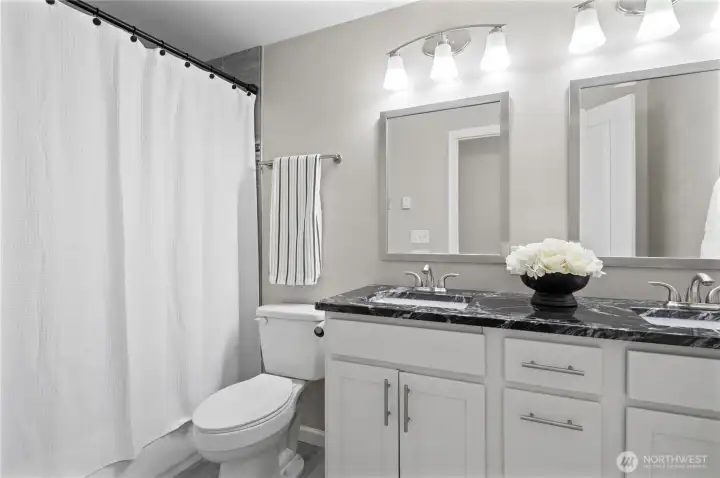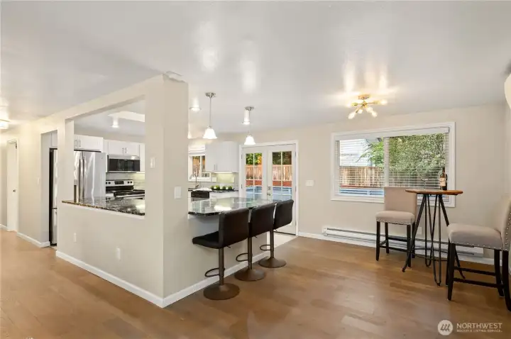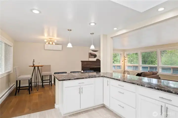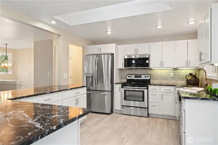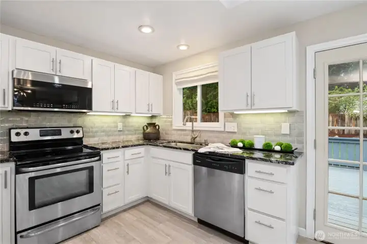 Modern split entry 3-bedroom, 3 full bath home is truly one of a kind located in desirable city of Edgewood. This home offers 1,950 square feet of living space and sits on a fenced lot larger than a quarter acre, providing ample room for gardening. The upper level boasts a stunningly renovated open-concept kitchen equipped with stainless steel appliances and striking granite countertops. This kitchen seamlessly connects both the living and dining areas. French doors in the kitchen lead out to an expansive wraparound deck, perfect for hosting barbeques and entertaining friends. The primary bedroom includes a private ensuite bathroom with a granite double vanity. The downstairs features a large family room, bonus room/den, laundry and a full bath. Upgrades include garage flooring, primary bath skylight, 30-year roof (’20) water heater and mini splits upstairs and down. This property's location offers convenient access to schools, Edgewood's shopping amenities, and is ideally situated near major highways I-5 and 167.