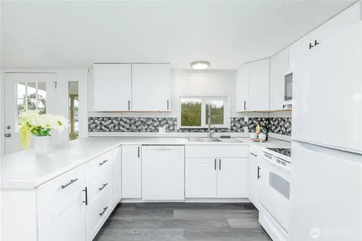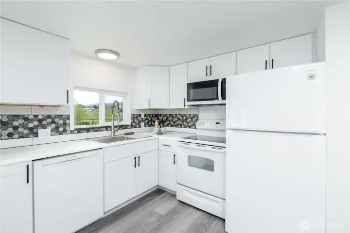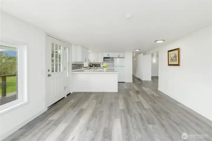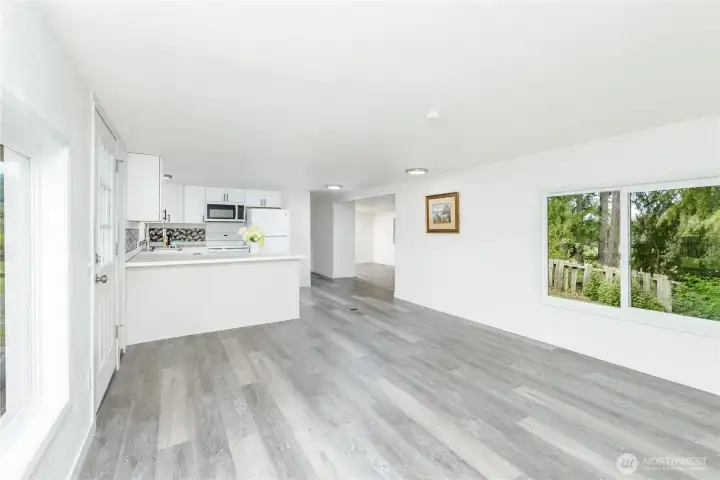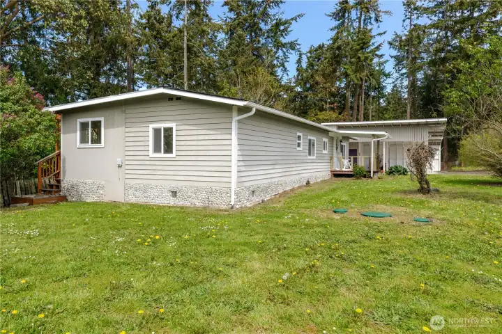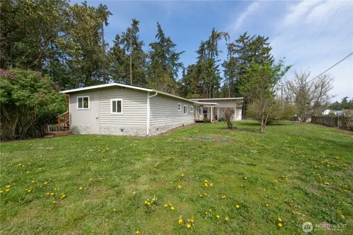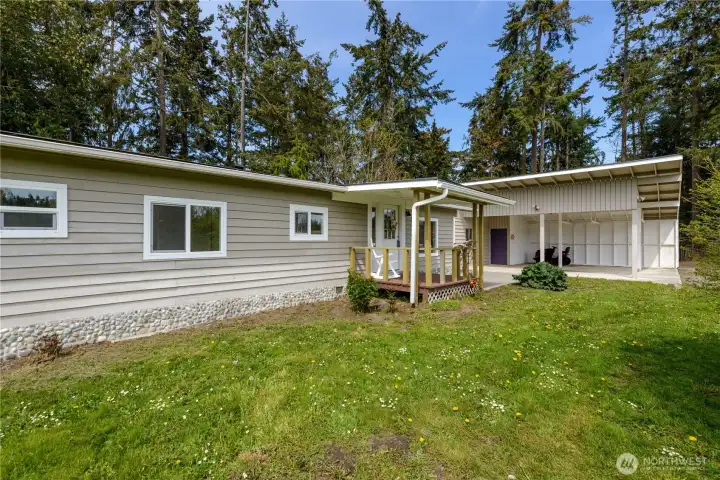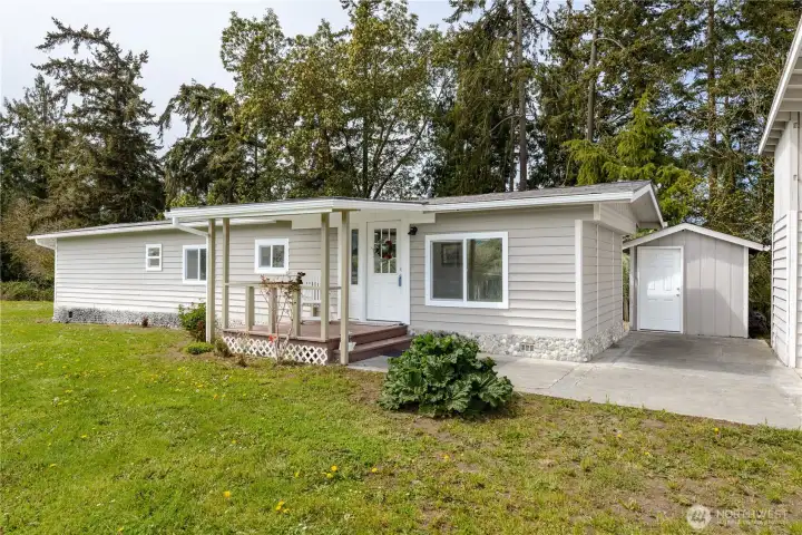 Sunny Sequim one level home just outside City limits on nearly 2 acres - remodeled and move-in ready. This 2-bedroom home plus a bonus room offers flexible space for guests, a home office, or hobbies. Spacious living room and family room. Major updates have already been done. Including a new roof, interior paint, flooring, kitchen cabinets and appliances, bathroom, washer/dryer, and hot water heater. Abundant natural light fills the home through new double-pane vinyl windows, showcasing gorgeous mountain views. A forced-air heat pump keeps the home comfortable year-round. The 508 sq ft workshop, 2-car carport and a shed provide ample room for tools, projects, and storage. The property offers a large, flat yard with room to garden, play or expand. Previously carved trail in the back yard going down the hill - currently overgrown - awaits restoration and enjoyment. UGA zoning allows for versatile uses and future possibilities. Port Williams public boat launch with beach access just right around the corner. Nearby Carrie Blake Park and Olympic Discovery Trail system access. This property offers peaceful rural living in a quiet, private setting. Yet only minutes from downtown Sequim amenities and the outdoor attractions of Olympic National Park. The perfect blend of Olympic Peninsula lifestyle living.