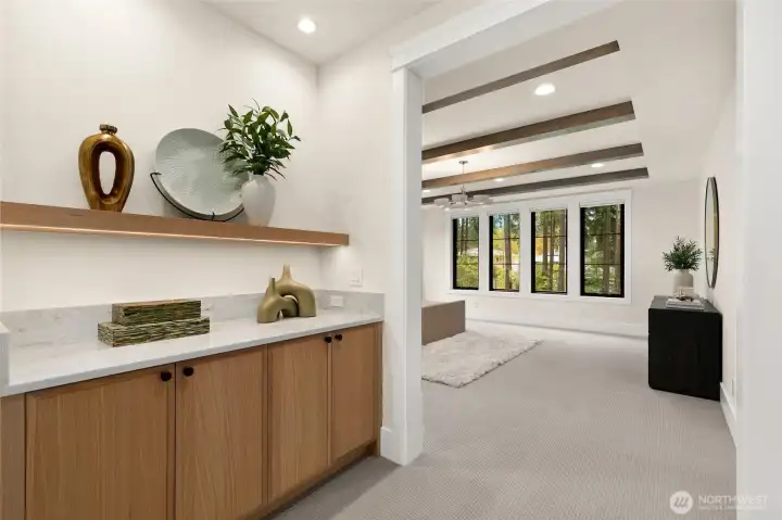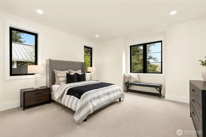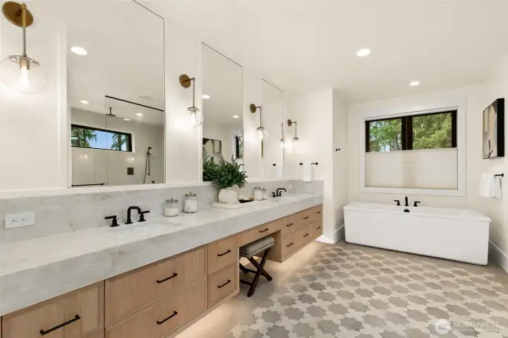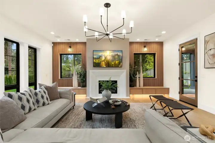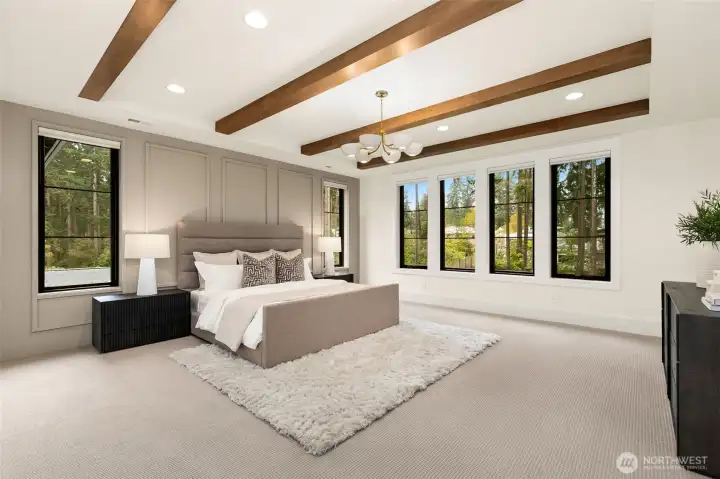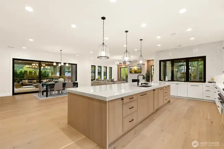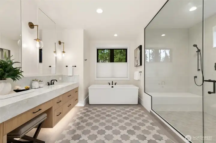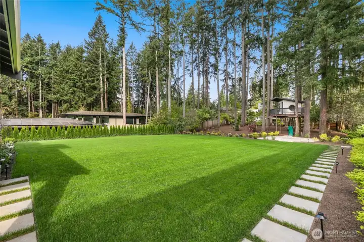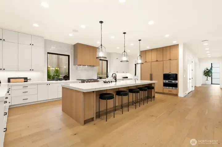 Set within the coveted Enatai setting, this exceptional Northwest Transitional JayMarc Homes estate presents a rare opportunity to own a distinguished residence on a beautifully landscaped 28,151 square foot homesite—offering remarkable scale, privacy, and presence in one of Bellevue’s most sought-after neighborhoods. At the heart of the home, the chef’s kitchen showcases Sub-Zero, Wolf, and Bosch appliances, custom cabinetry, generous prep space, and elevated finishes. A service corridor connects to the formal dining room with dual beverage centers, extensive storage, and a spacious walk-in pantry. The main level blends open living with private retreats, including a refined study with custom built-ins. A dedicated main-floor media room is thoughtfully secluded for immersive movie nights. The primary suite is a serene escape with rich hardwoods, a dramatic beam ceiling, spa-inspired bath, expansive walk-in closet, and a dedicated drop zone. An additional upstairs guest suite offers full independence with its own washer/dryer, bar sink, beverage center, and ensuite bath. The lower level includes a media lounge with wet bar and a dedicated fitness studio. Outdoors, beautifully landscaped grounds offer privacy, space to gather, and a charming playhouse. A refined expression of craftsmanship and modern luxury, this Enatai residence delivers exceptional living at every turn.