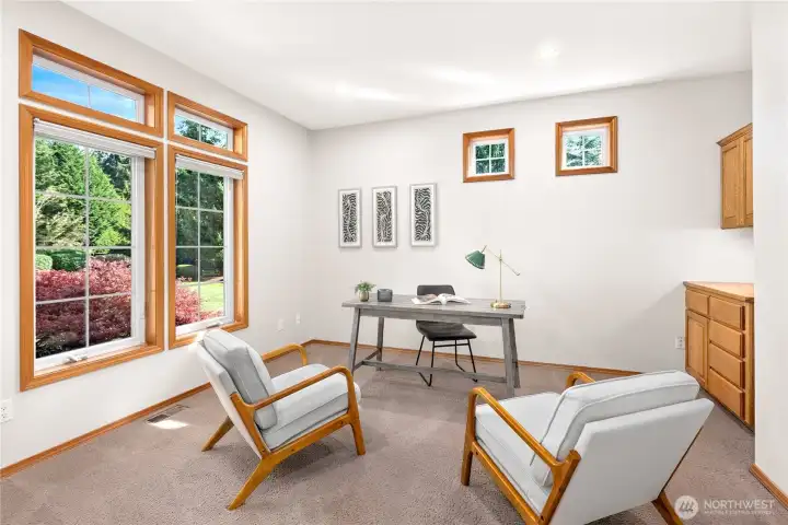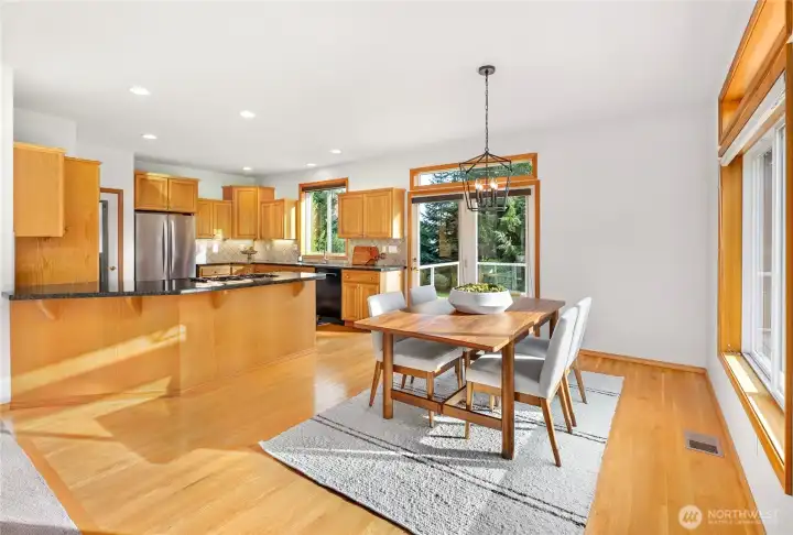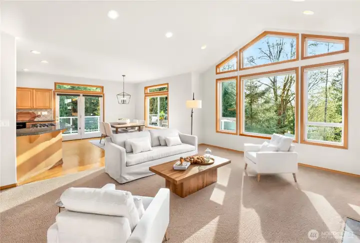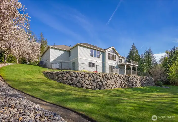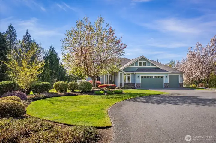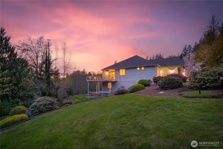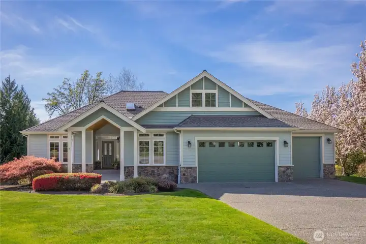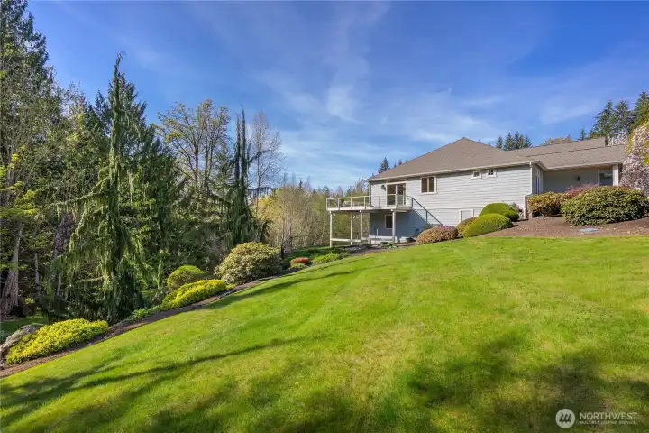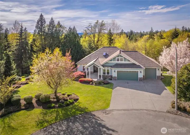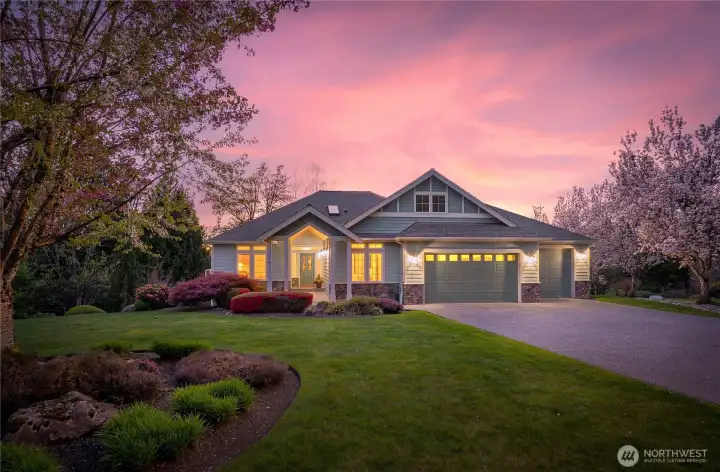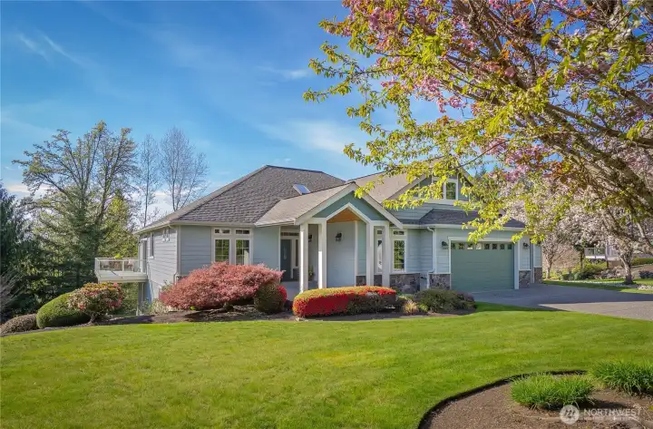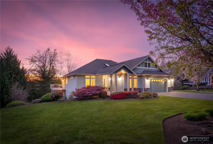 [SNOHOMISH'S BEST KEPT SECRET] Perched at the private end of a quiet cul-de-sac in coveted Lobo Ridge, this impeccably maintained, one-owner rambler with daylight basement is a rare find. Mature landscaping, a pristine yard, and a greenbelt backdrop set the tone for the privacy and serenity that define this home. Inside, soaring vaulted ceilings, rich hardwood floors, and generous natural light frame breathtaking territorial views. The open-concept kitchen, dining, and living flow effortlessly to an expansive deck — perfect for entertaining. The primary suite is spacious and complete with a luxurious bathroom retreat. A dedicated office adds flexibility. The daylight lower level offers a sprawling family room with fireplace, full bathroom, and large bedroom — an ideal multi-generational setup. The oversized three-car garage is impressive on its own, but an additional attached garage with lower level access delivers the ultimate bonus: A workshop, private gym, or the perfect home for your collector car. Minutes from Hwy 2, downtown Snohomish, and top-rated Snohomish schools. Central A/C, sprinkler system, and ample parking complete this exceptional offering. [SEE IT FIRST]