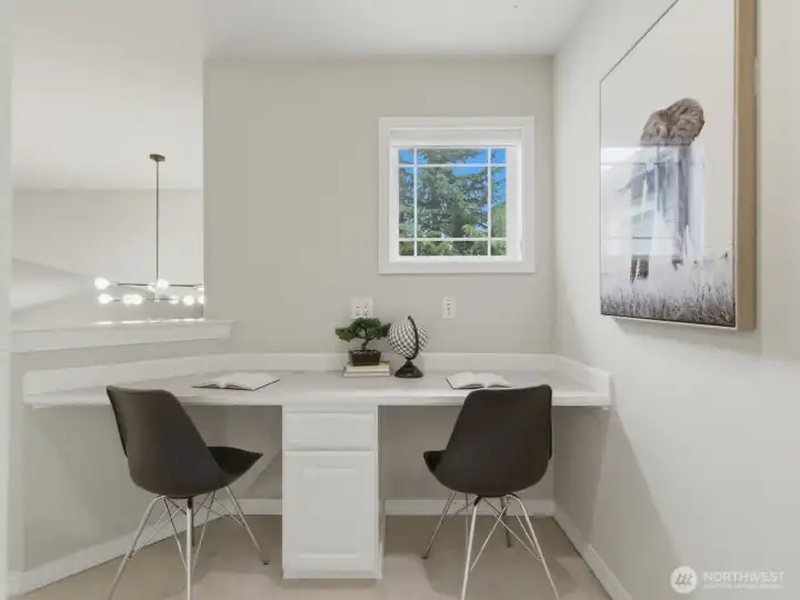 Office/den with French doors on the main floor, tucked away would make for a great home office