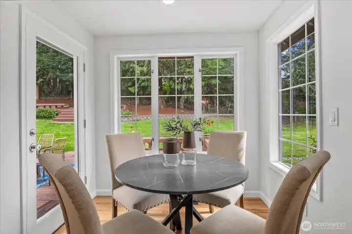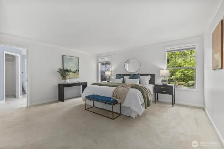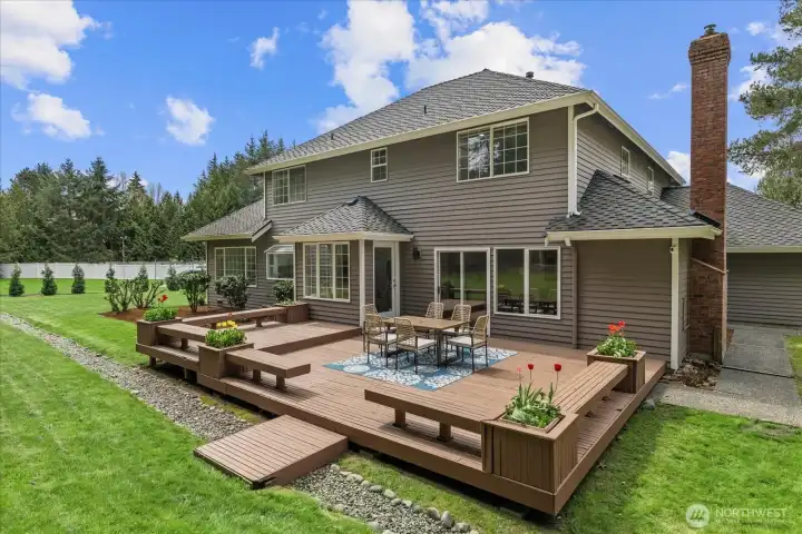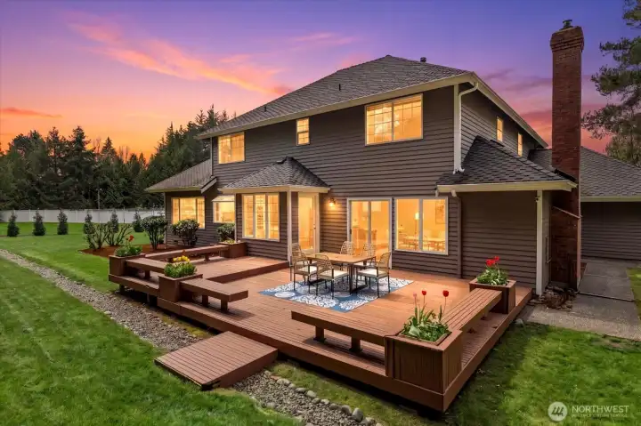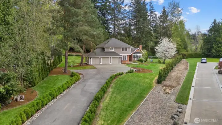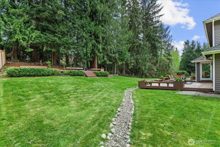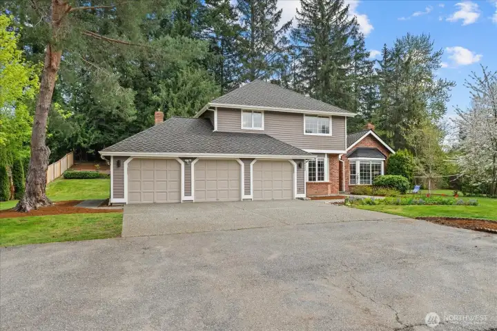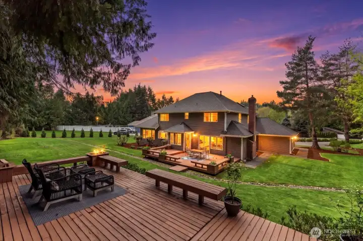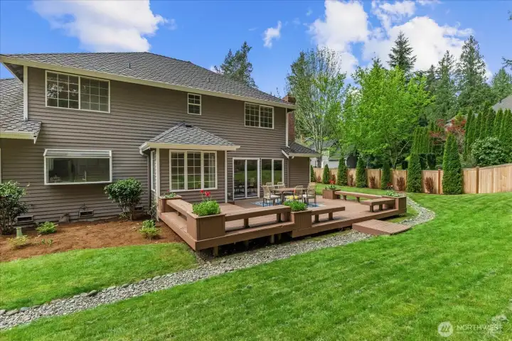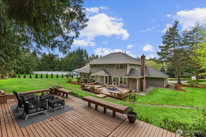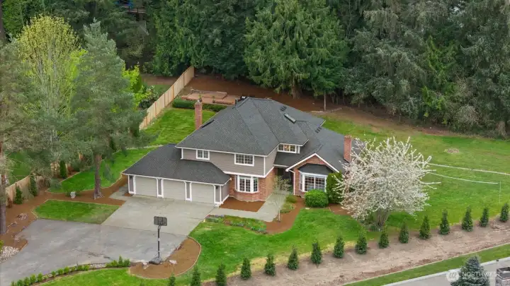 Welcome to Rainbow Lake Ranch, one of the Eastside's most treasured private enclaves, set within the highly sought-after Issaquah SD. Nestled among luxury estate homes; This exceptional property sits on an expansive 27,915 sq ft level lot, offering a serene park-like setting w/lush mature landscaping & unmatched privacy. This elegant traditional 2-story home, features 2,920 sq ft, 4 bedrooms plus a den, & 2.75 baths. Soaring vaulted living & dining spaces are complemented by gleaming hardwoods throughout the main level. The chef's kitchen shines w/a gas cooktop, granite countertops, & generous cabinet space; designed for both everyday living & effortless entertaining. The luxurious primary suite offers dual walk-in closets & a spa-inspired bath, while freshly remodeled bathrooms, a newly added main-floor walk-in shower, & thoughtfully updated interiors create a refined, move-in-ready experience. Major improvements include a 2025 furnace, A/C, 2018 water heater, & a 2020 Presidential architectural roof. Washer & dryer convey. Designed for elevated outdoor living, enjoy a spacious main deck plus a second deck overlooking the expansive backyard, with a private trail leading to the community park featuring a duck pond & sports courts. A 3-car garage & convenient access to Issaquah & I-90 complete this exceptional offering. A rare opportunity to own in one of Sammamish's most sought-after communities w/top-ranked schools, nature at your doorstep, & every major system already done.