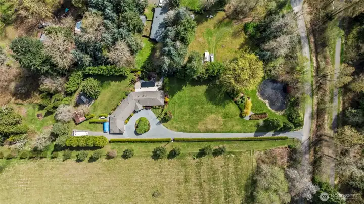 Welcome to this PRIVATE sanctuary where the opportunities are ENDLESS. This Custom Rambler is meticulously maintained on a secluded estate with 3.5 acres offering plenty of space to stretch out and make all of your hobbies possible! This property features mature landscaping, a private pond with firepit at the gated entry and Koi pond off back deck/patio with waterfall feature, above ground garden beds with greenhouse, hidden chicken coop, additional shop w/wood burning stove and loft storage. The back 1/3 of property is bonus space with potential for expansion and additional dwelling with separate driveway available. Inside this 3058 sq ft home enjoy heated tile flooring throughout, vaulted ceilings, fresh neutral paint. Entertain in the sunny open kitchen w/ large island, formal dining room and walk out deck/patio space with southern sun exposure and a true tranquil setting! The primary suite features french doors, fireplace, vaulted ceilings, giant en-suite spa like bath with jetted tub, separate shower, two vanitys and a walk in closet w/ built in organizers to dream about! Two Large flex rooms perfect for bonus family room with stunning floor to ceiling fireplace feature and large office/den space, bonus utility space with extra cabinets and utility sink, two extra bedrooms have walk in closets and share jack & jill Bath. Centennial Trail is across the street! Not far from Lake Cassidy! SO MANY THINGS TO LIST!! You won't want to miss this dreamy property!